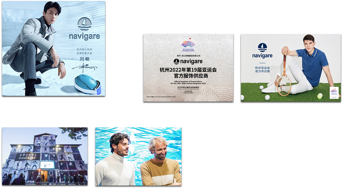 Navy Group S.P.A. 為提升navigare品牌在全球消費者中的影響力,除了延續(xù)品牌始終保持的旅行主題銷售外,逐漸將體育賽事的廣告支持拓展到更廣闊的領域。例如:野外長途賽車、環(huán)意大利單車比賽、遠程帆船比賽以及全球最大規(guī)模的高級賽事-奧林匹克運動會等。