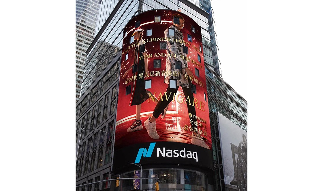 2019年農(nóng)歷新年之際,意大利時尚休閑品牌小帆船navigare攜手國內(nèi)100個知名品牌集體閃耀美國紐約時代廣場納斯達克大屏,在“世界的十字路口”向世界人民獻上新春佳節(jié)的第一聲祝福。2019年農(nóng)歷新年之際,意大利時尚休閑品牌小帆船navigare攜手國內(nèi)100個知名品牌集體閃耀美國紐約時代廣場納斯達克大屏,在“世界的十字路口”向世界人民獻上新春佳節(jié)的第一聲祝福。