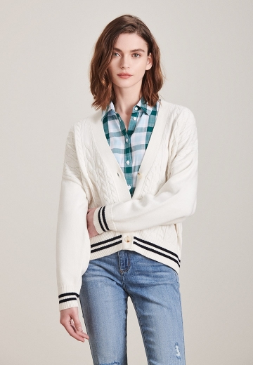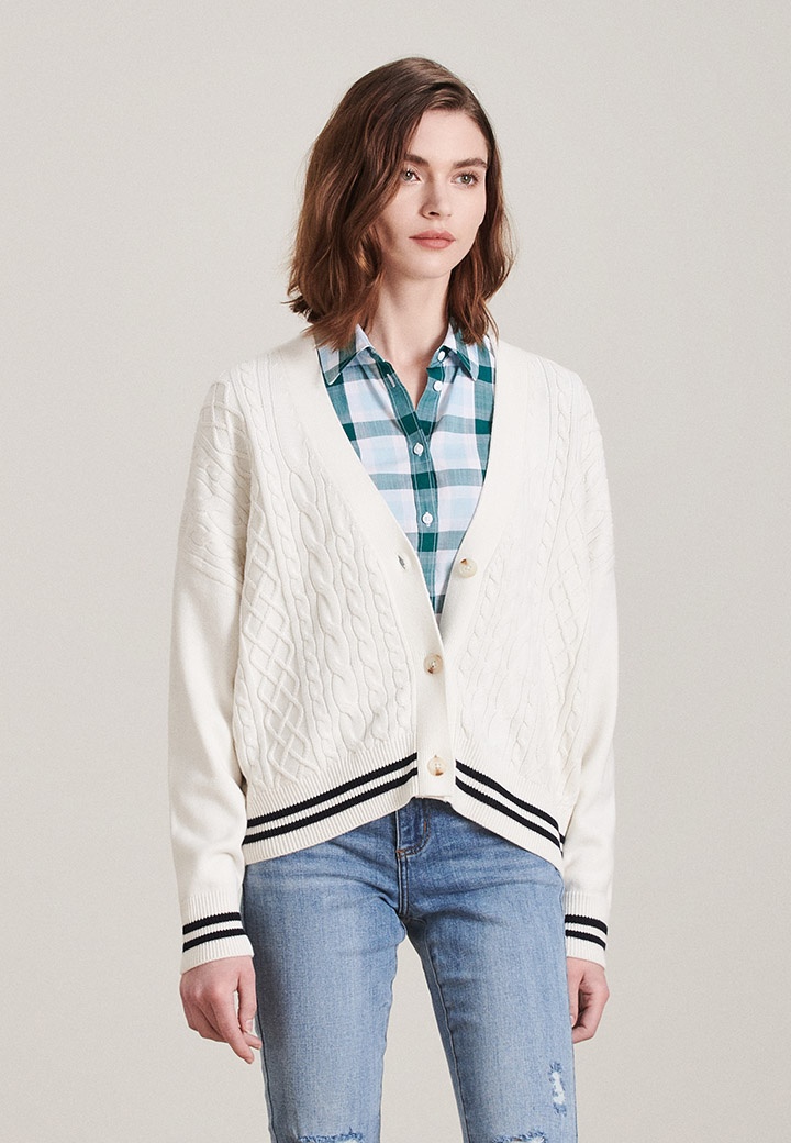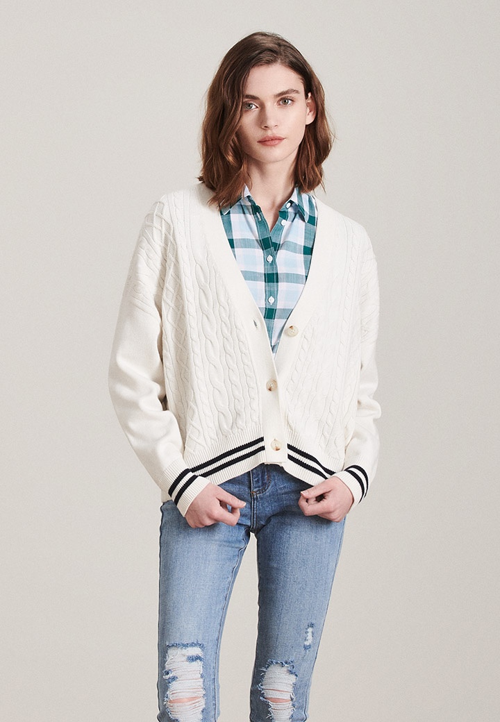 日常生活中的閑暇時(shí)光,可以選擇休閑針織開(kāi)衫作為時(shí)尚穿搭單品,簡(jiǎn)約時(shí)尚的款式,利用紗線針織的毛線肌理感組成的暗紋,內(nèi)搭格紋襯衫與牛仔褲,增添一份屬于你的休閑雅致。 點(diǎn)擊查看