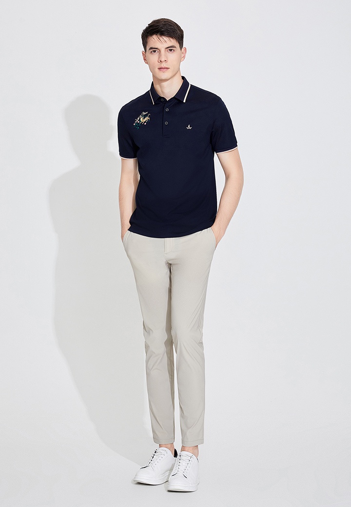 貨號:POLO1225522081666+休閑褲1212072021909 經典版型,合身輪廓,勾勒出英朗身姿,出彩的撞色領口和袖口,搭配同色系的精致虎年刺繡,以簡約大氣的風格,輕挑出街,全新演繹時尚休閑。 點擊查看