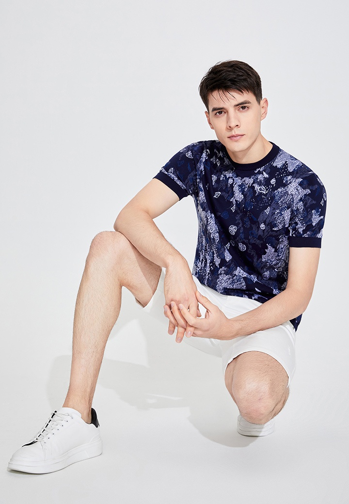 經(jīng)典海洋色系,圓領(lǐng)設(shè)計(jì)演繹經(jīng)典傳承,白色滿印花的展現(xiàn),搭配休閑褲裝,增添時(shí)尚感,這種時(shí)尚且有休閑的穿衣方式讓男士硬朗而又沉穩(wěn)的氣質(zhì)倍增。 點(diǎn)擊查看