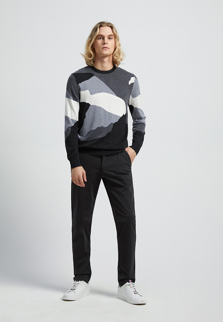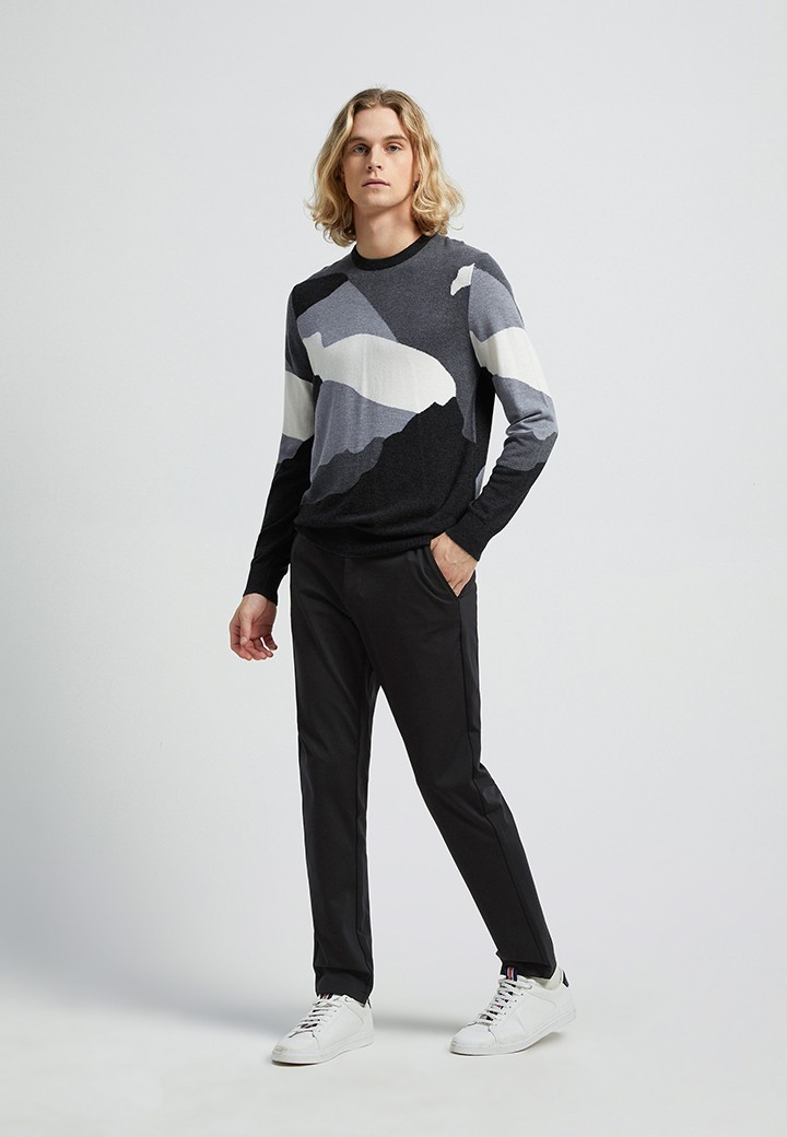 123400907-920 常規(guī)修身款毛衣,運(yùn)用經(jīng)典黑白灰色系打造幾何時(shí)尚風(fēng)趣;搭配休閑穿著,簡(jiǎn)潔合體,色彩清新自然,彰顯年輕的活力打破固有的嚴(yán)肅和正式感,更具有休閑感。 點(diǎn)擊查看
