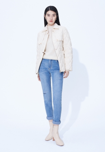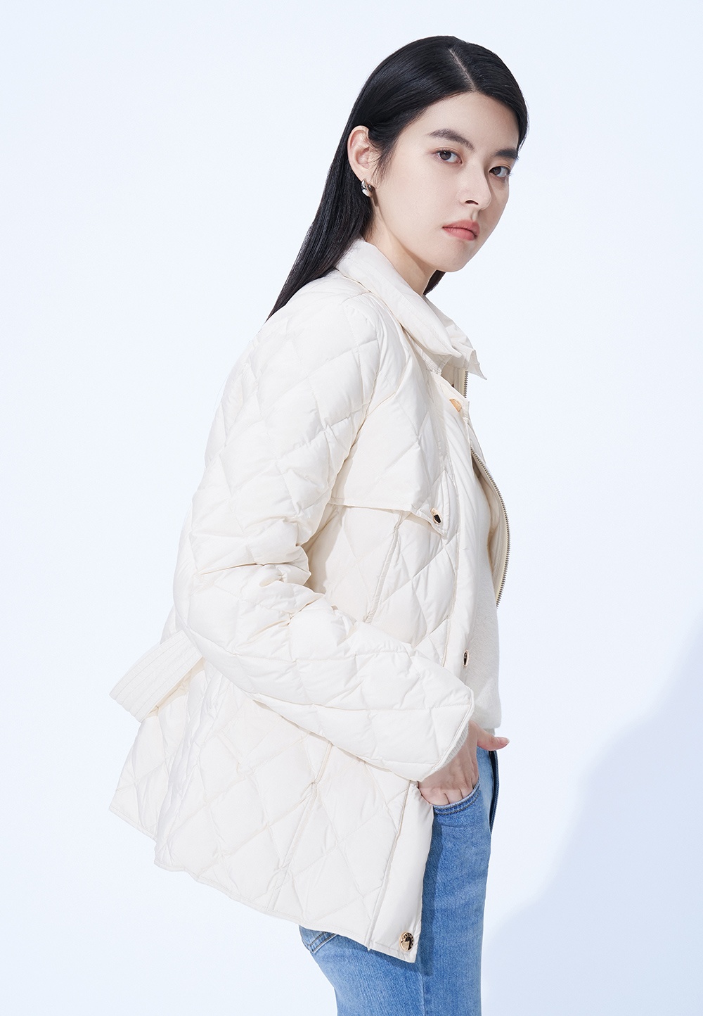 菱形格紋羽絨服,向表面添加更多精致細(xì)節(jié)的同時(shí),與常規(guī)冬季厚重臃腫的外套形成反差,收腰設(shè)計(jì),巧妙修飾腰線,達(dá)到保暖又顯瘦效果,打造簡(jiǎn)約又不失時(shí)尚的休閑著裝。