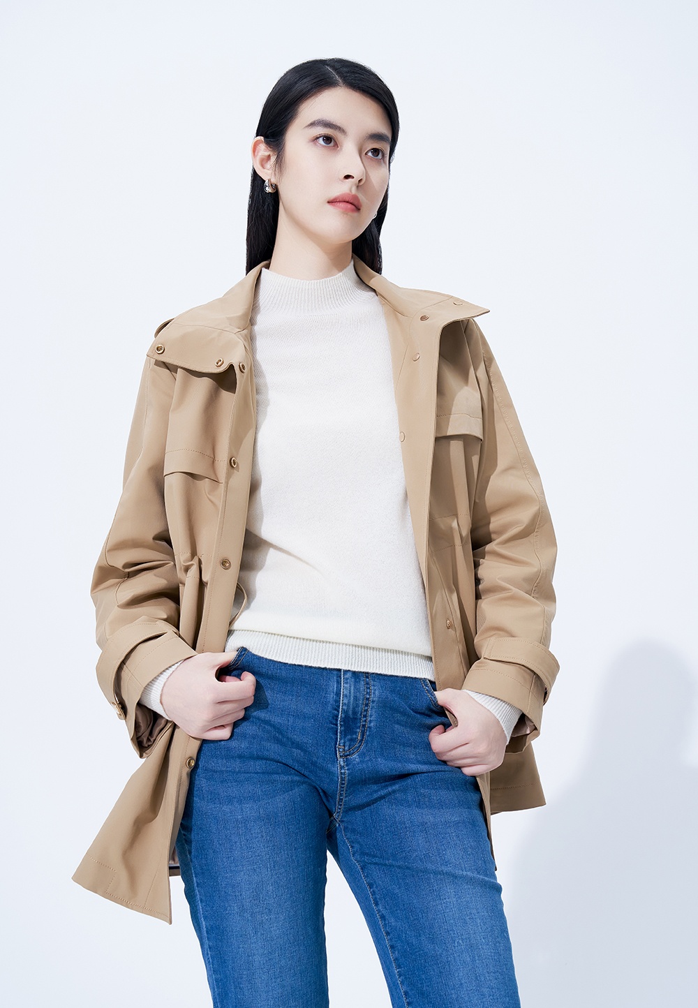 簡約大方的版型,結(jié)合收腰設(shè)計(jì),是美好的一點(diǎn)“小心機(jī)”,勾勒出女性曲線美的同時(shí),整體氣質(zhì)更顯利落干練,展現(xiàn)出都市女性風(fēng)范,外出不止能擋風(fēng),還讓你走路帶風(fēng)。