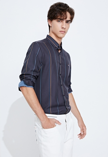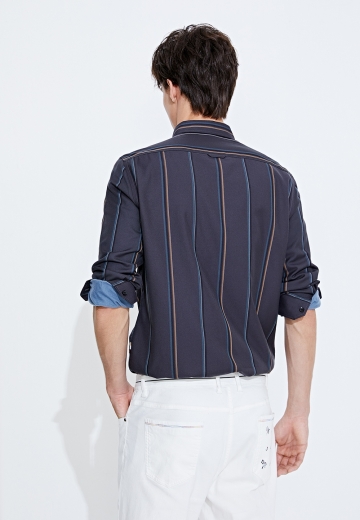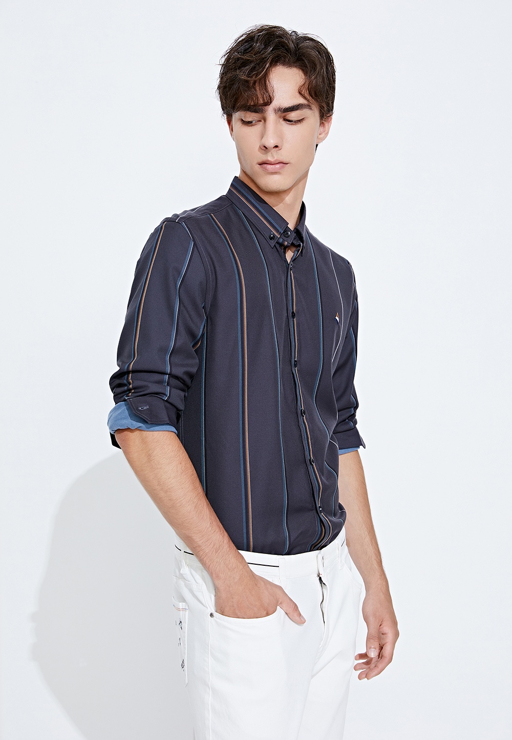 基礎(chǔ)版型豎條紋長襯設(shè)計(jì),簡(jiǎn)約不失時(shí)尚感,縱向延展的線條修飾身材更修長挺拔,搭配淺色休閑褲,時(shí)尚大方,應(yīng)用于不同場(chǎng)景,穿出自己的風(fēng)格來。 點(diǎn)擊查看