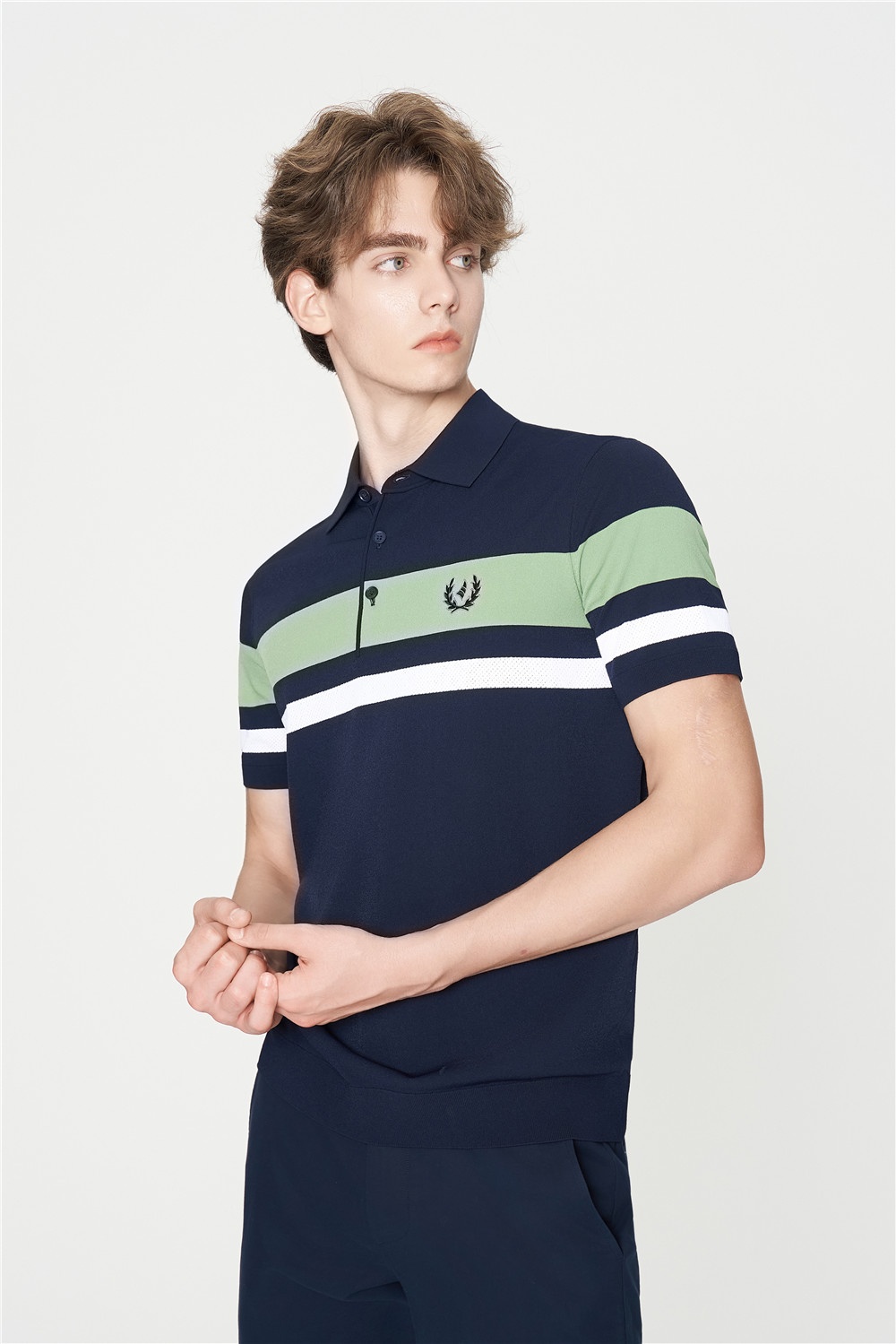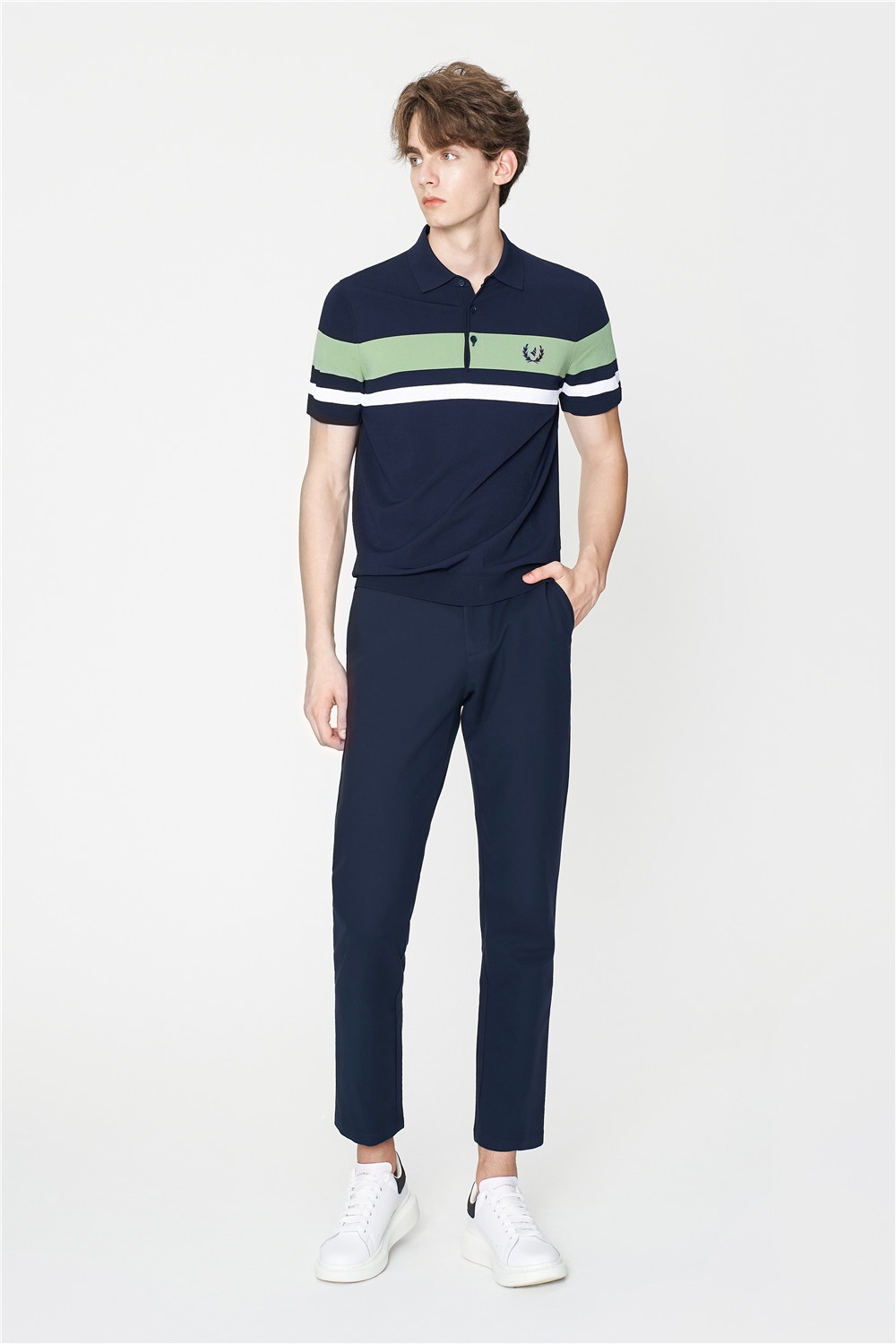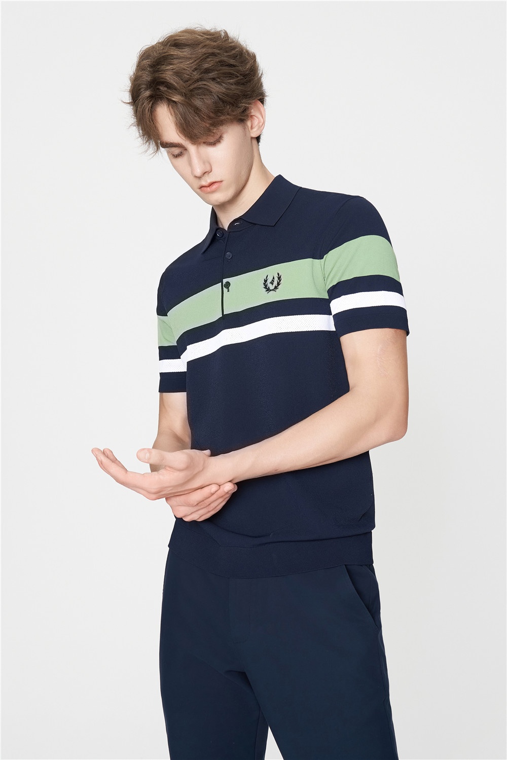 海藍色表達著冒險的故事,助力塑造男性沉穩(wěn)與勇敢形象,搭配深色長褲,更顯高冷氣質,綠白條紋的融入,打破了純色的沉悶與凝滯感,給生活注入意趣。