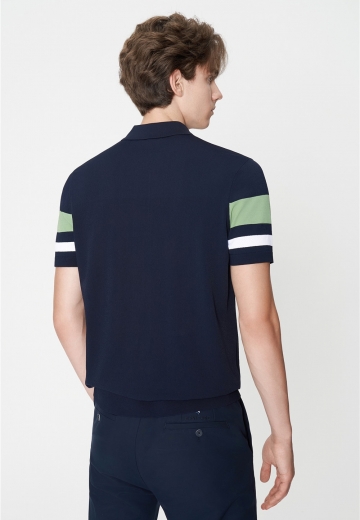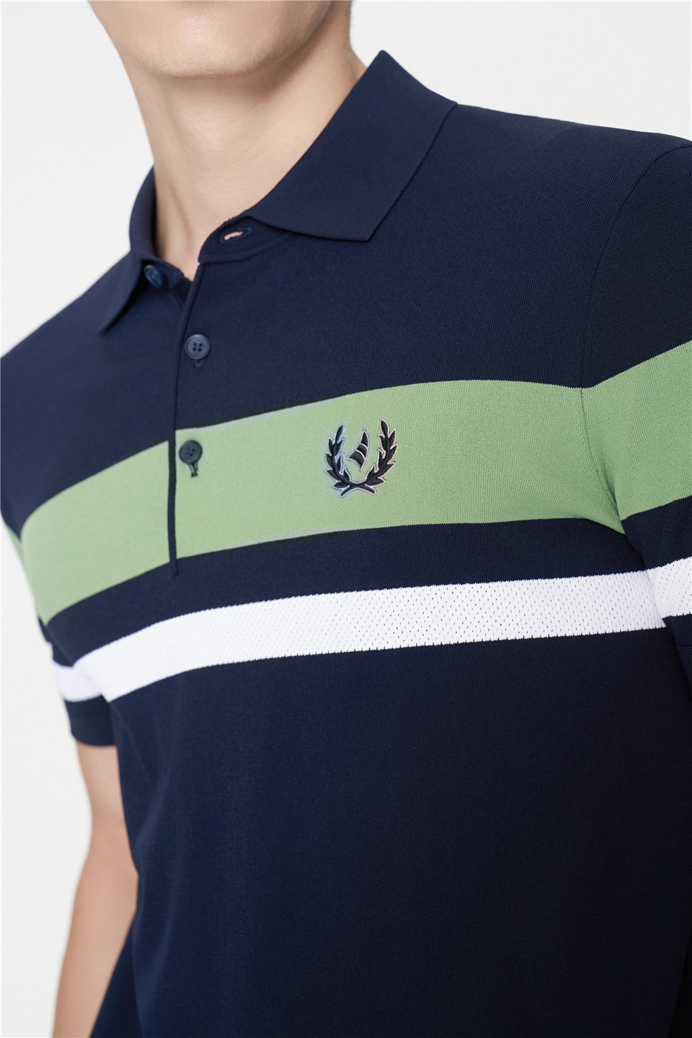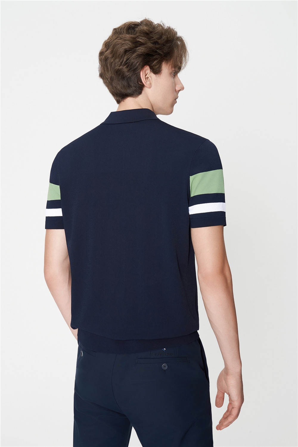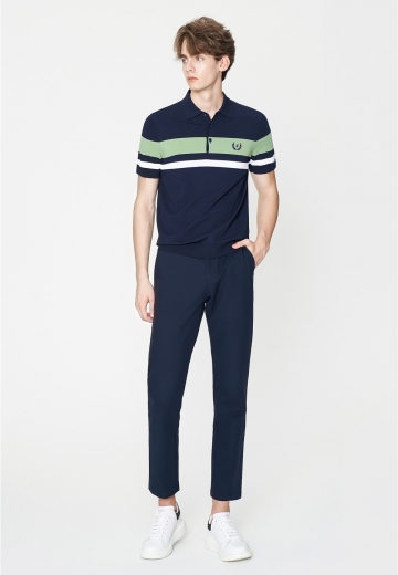 海藍色表達著冒險的故事,助力塑造男性沉穩(wěn)與勇敢形象,搭配深色長褲,更顯高冷氣質,綠白條紋的融入,打破了純色的沉悶與凝滯感,給生活注入意趣。
