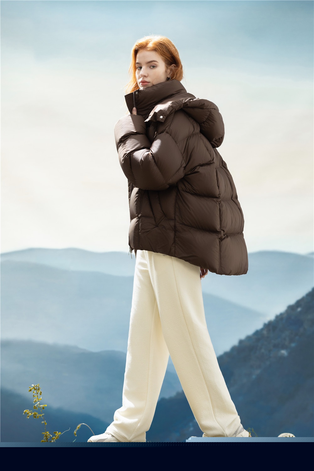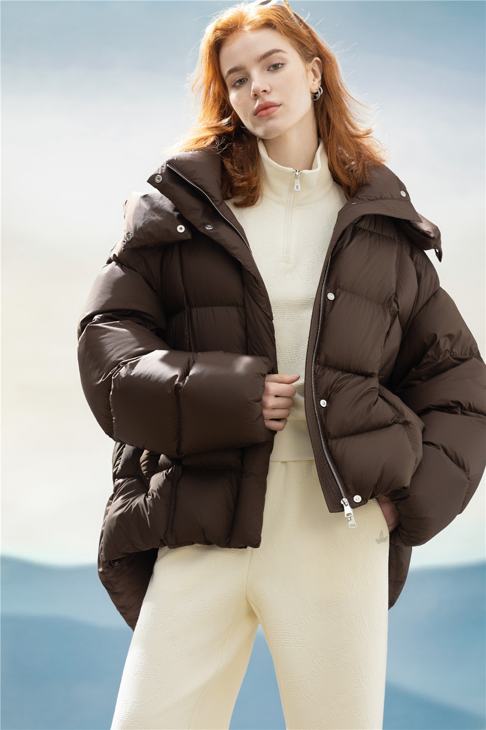 中裝羽絨服為防風(fēng)保暖上足安全感,質(zhì)感蓬松輕盈,冬季出行輕松抵御寒冷來襲,疊穿椰奶白半開領(lǐng)衛(wèi)衣搭同色系休閑長(zhǎng)褲,讓颯爽與溫柔參半,通勤/旅行,完成風(fēng)格跨界。