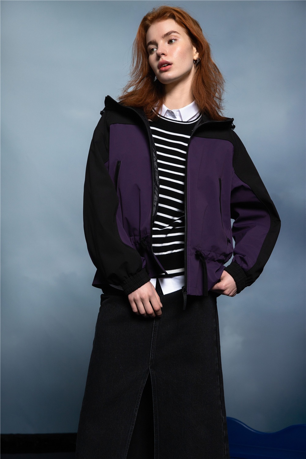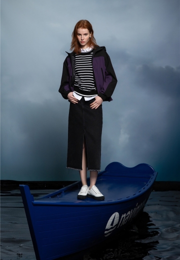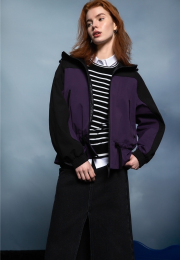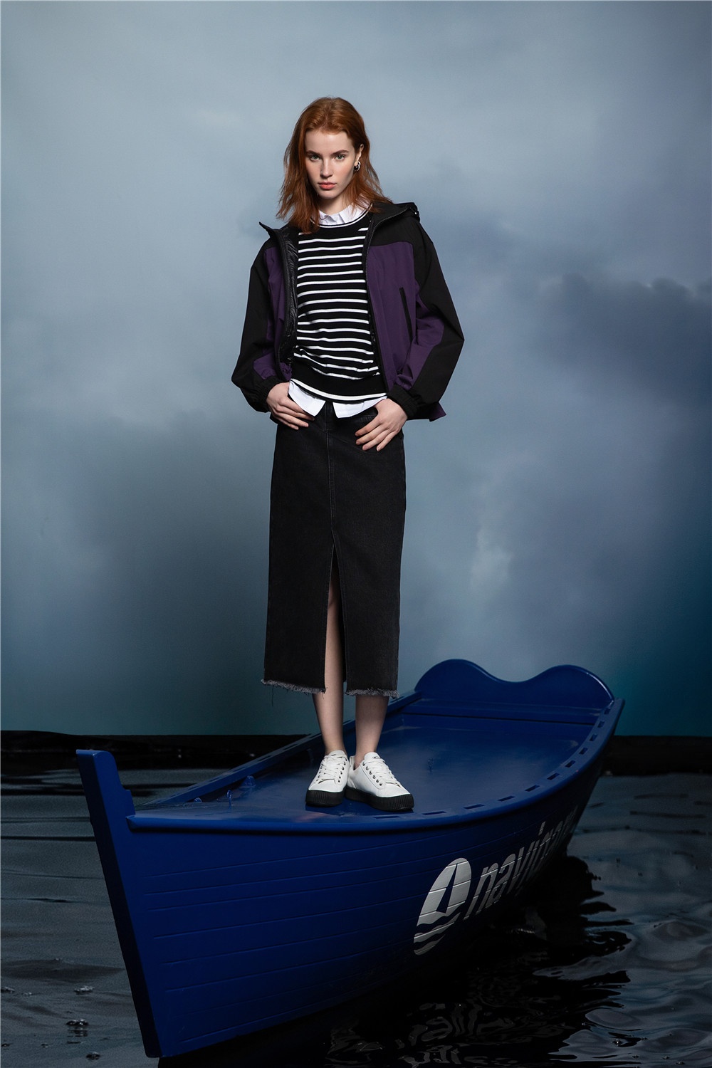 紫色的優(yōu)雅神秘融合黑色的沉穩(wěn)大方,雙色拼接羽絨服,簡(jiǎn)約廓形,輕盈保暖,內(nèi)搭毛衣襯衫豐富層次,搭配牛仔半裙的利落颯爽,時(shí)尚碰撞實(shí)用主義,高品質(zhì)生活由此啟程。