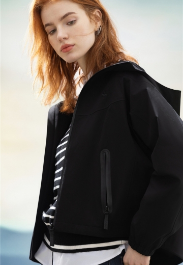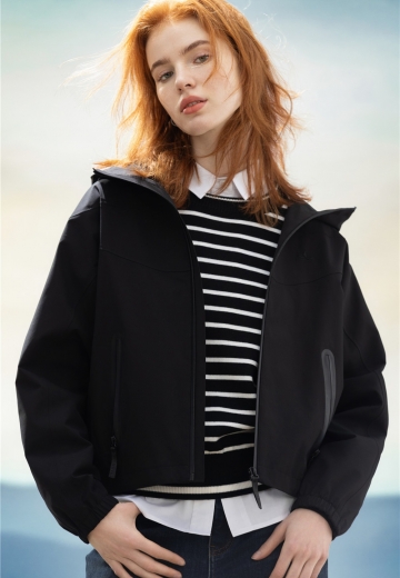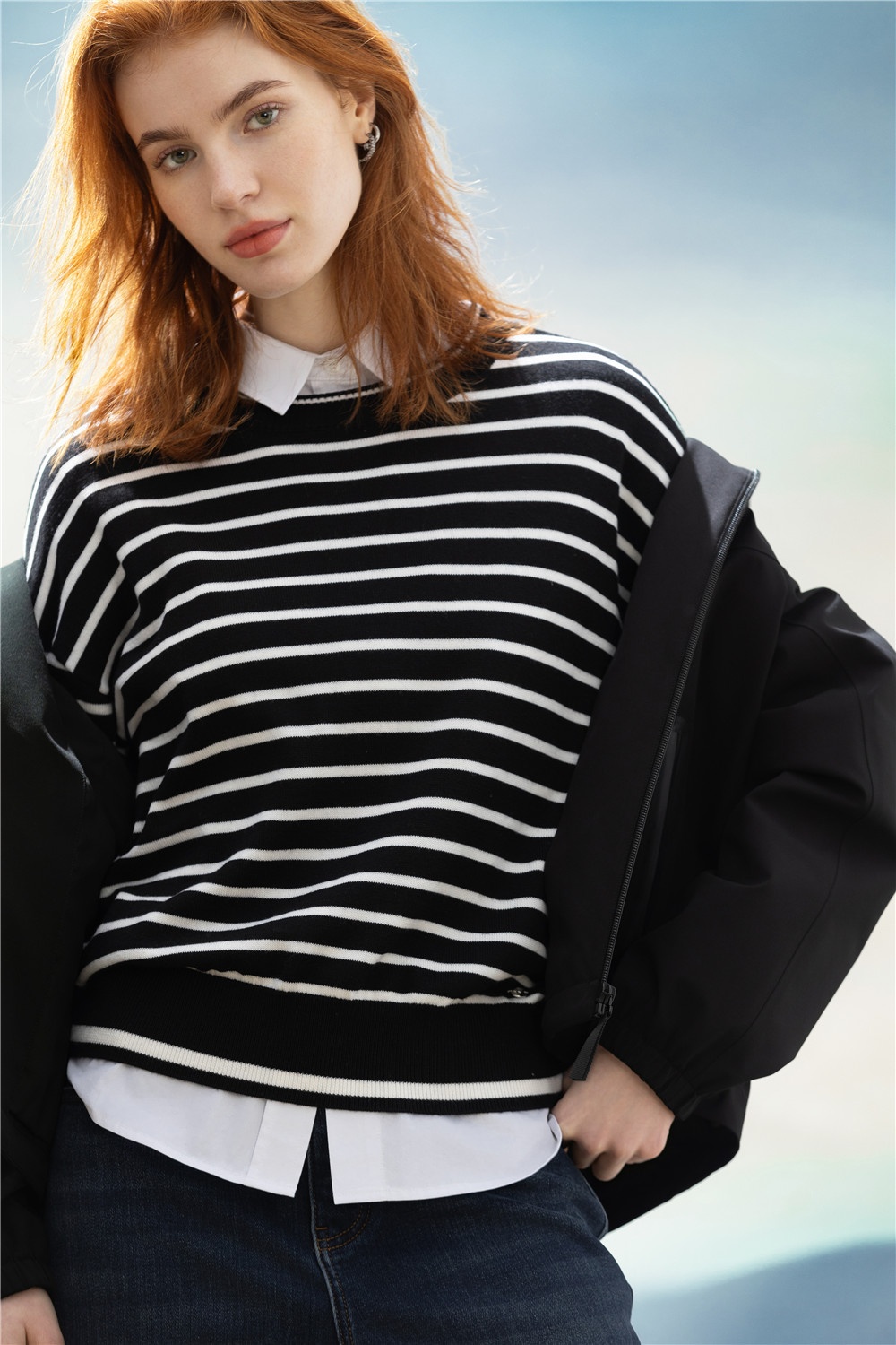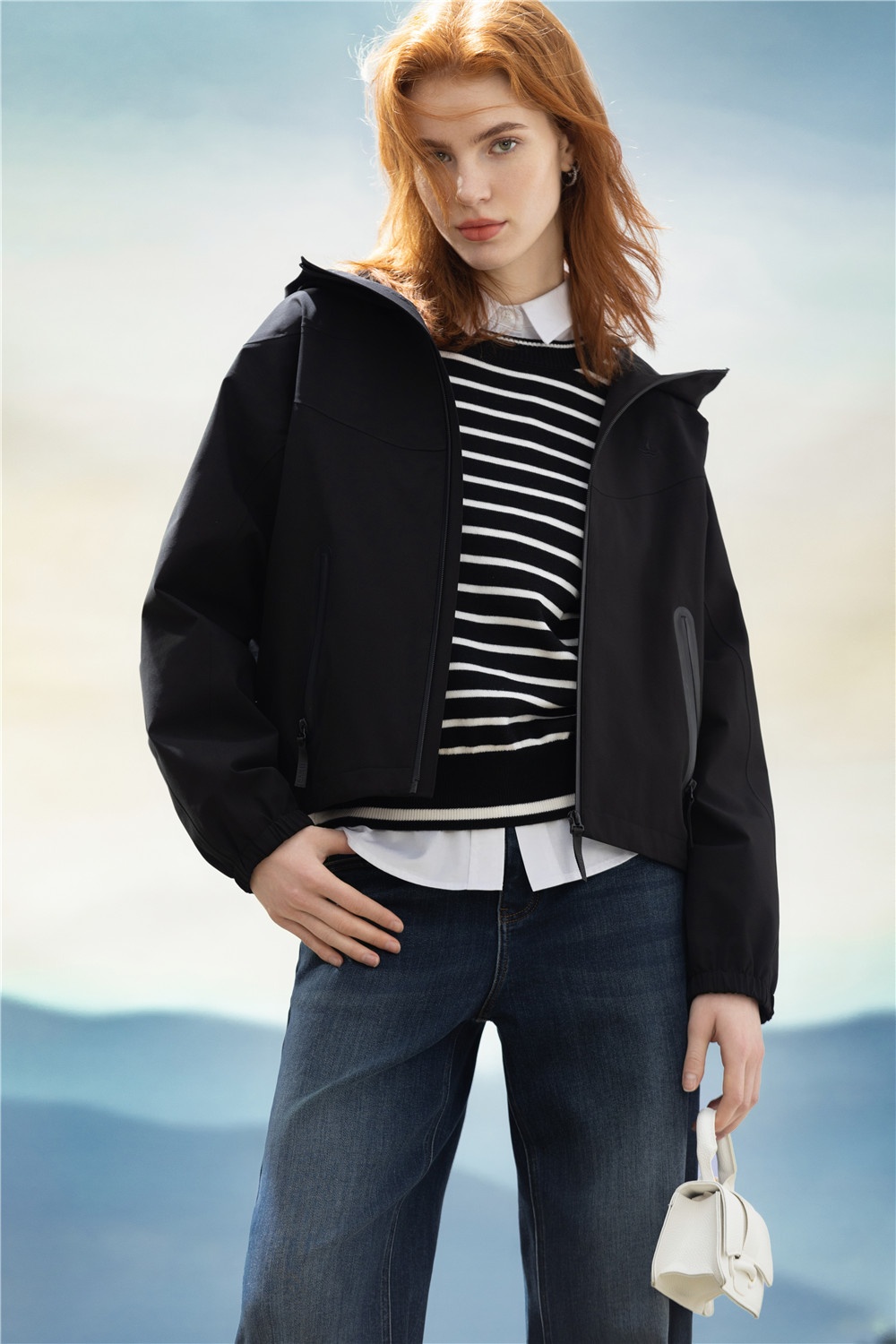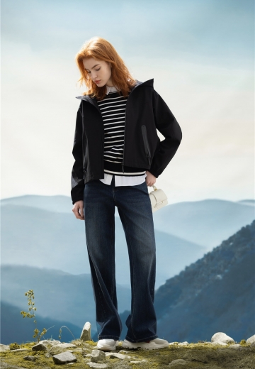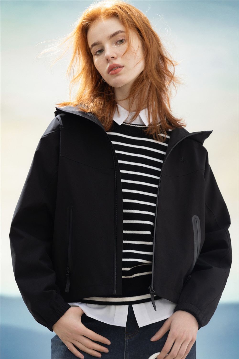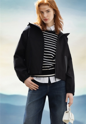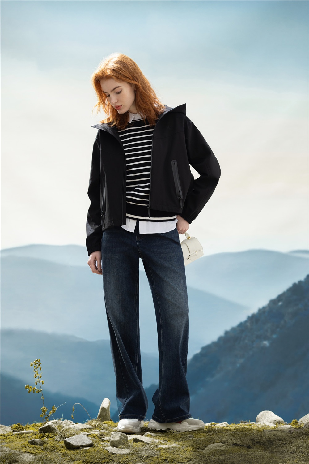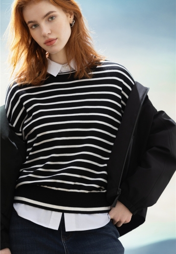 放慢腳步,翩然入秋。經(jīng)典黑色短裝夾克,內(nèi)搭黑白條紋毛衣,巧疊白襯衫,融入摩登學(xué)院風(fēng)范,再搭配牛仔褲的率性風(fēng)格,表達(dá)自由主張,自信而獨(dú)立。