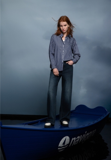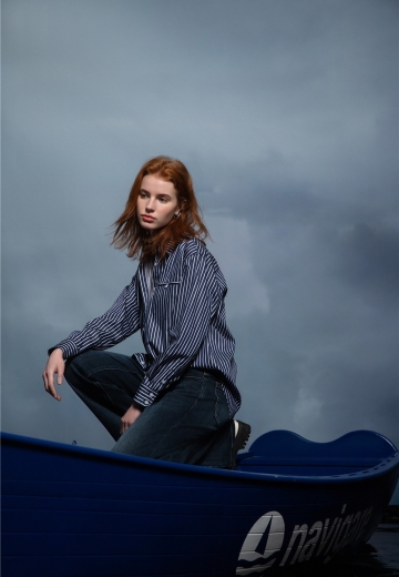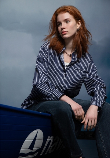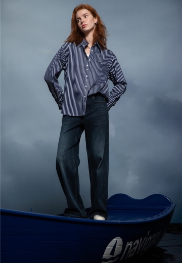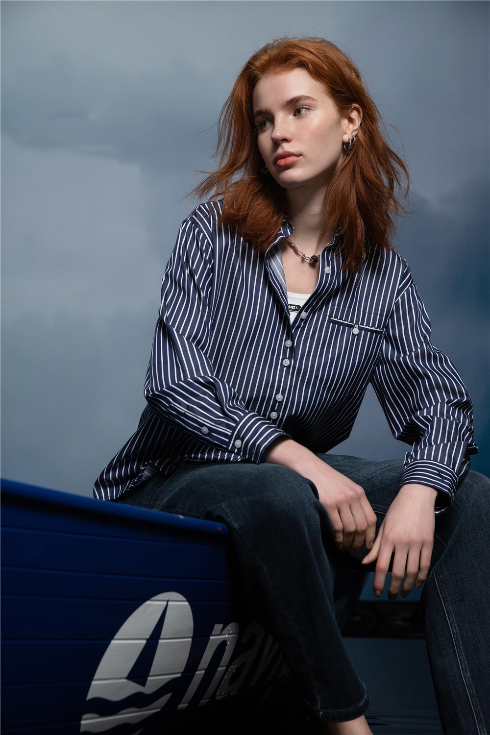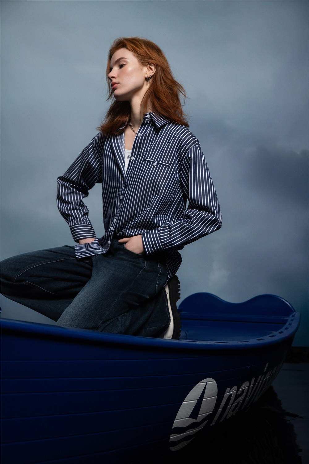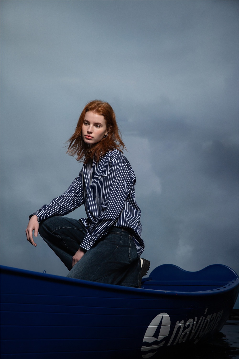 經(jīng)典條紋元素糅合?;昱渖O(shè)計,簡約輪廓、寬松版型、考究做工,外形大方不失精致細(xì)節(jié),搭配闊腿牛仔褲的率性松弛,肆意展現(xiàn)自信而豐盈生命張力。 點擊查看