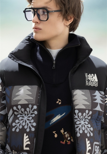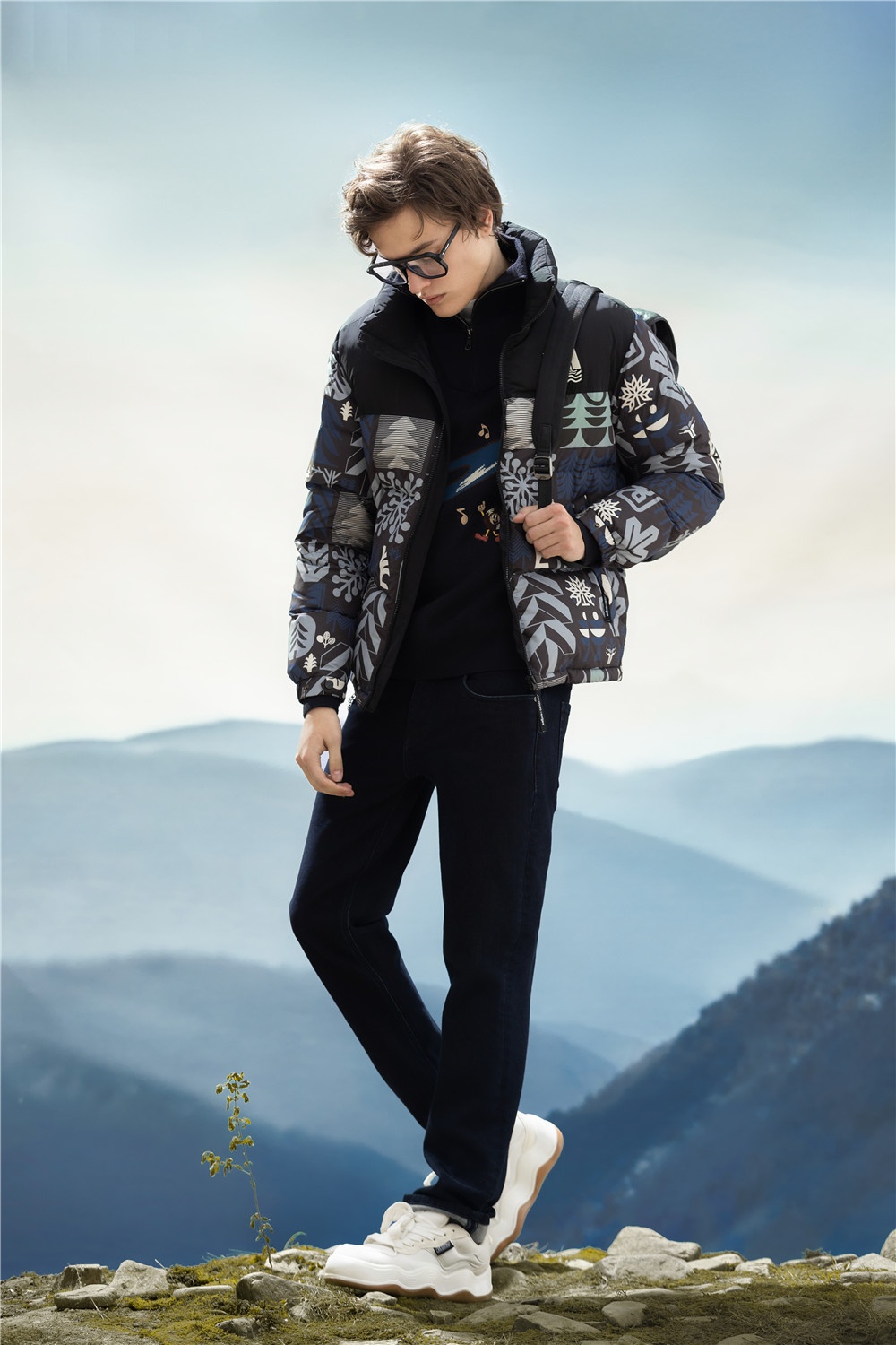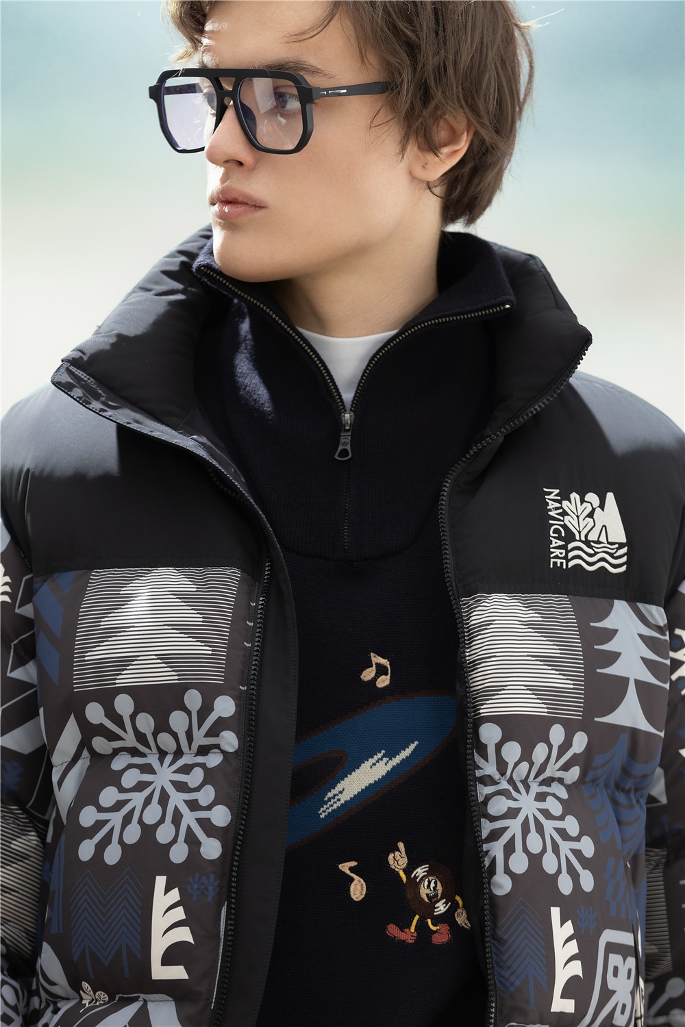 短裝羽絨服,用簡(jiǎn)潔的圖案把冬日風(fēng)景描繪其上,營(yíng)造出簡(jiǎn)約而充滿(mǎn)趣味的審美感受,內(nèi)搭半開(kāi)領(lǐng)毛衣,柔軟細(xì)膩包裹身心,和深色牛仔褲搭配,張揚(yáng)個(gè)性態(tài)度,盡享自在生活。
