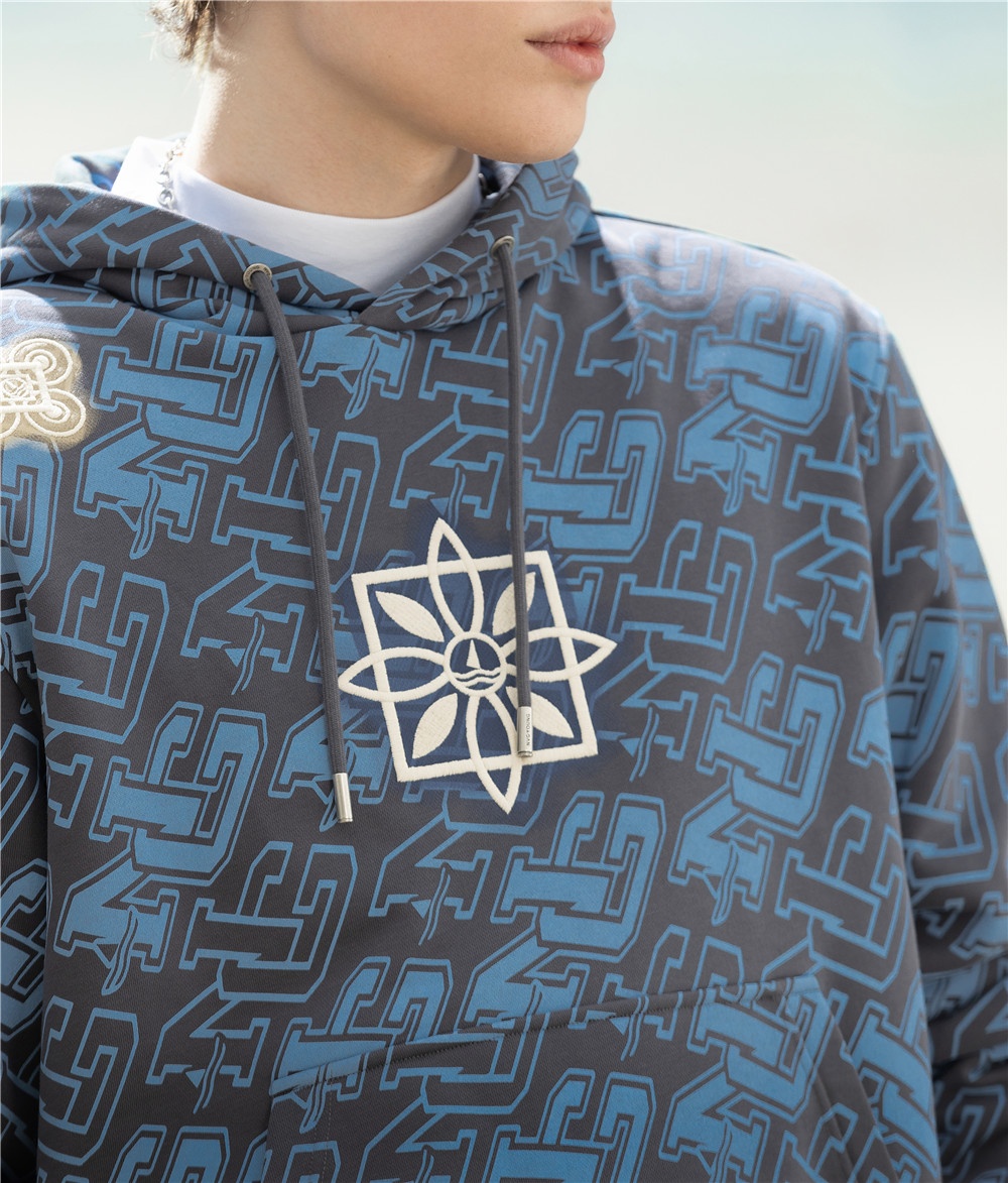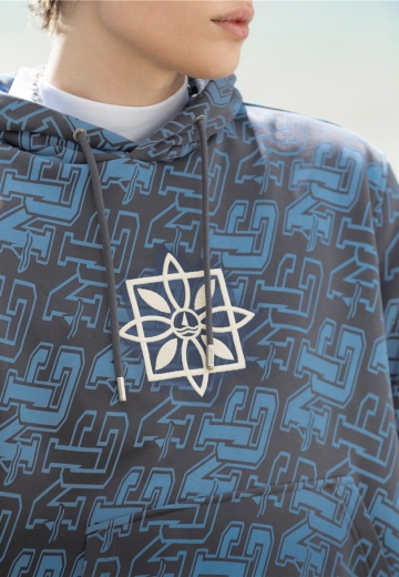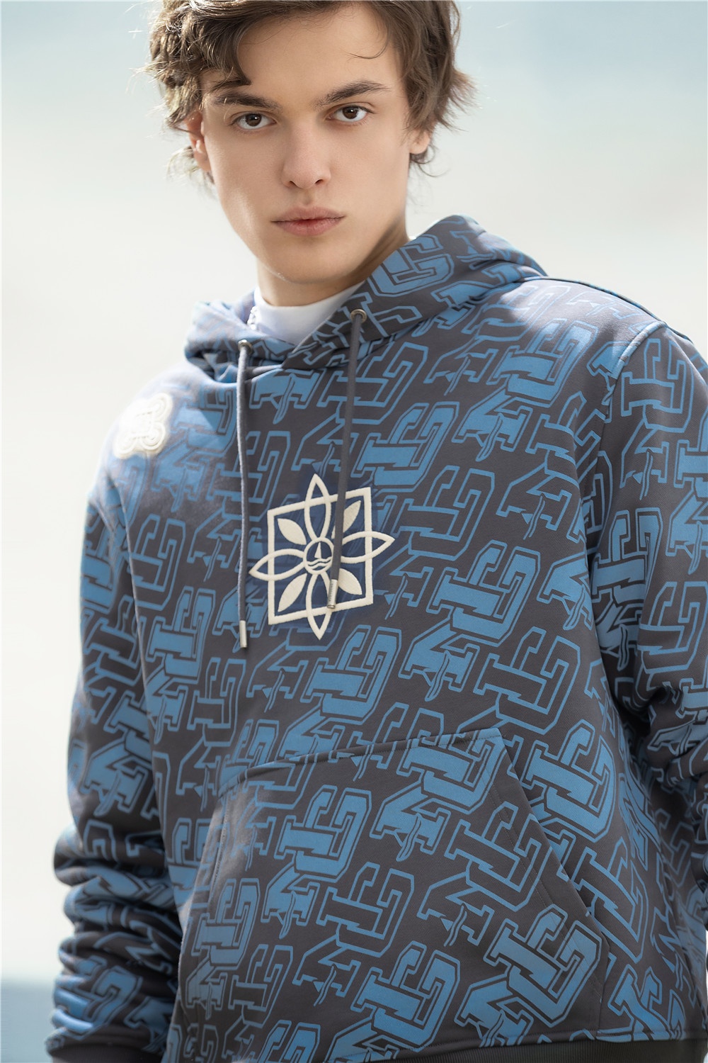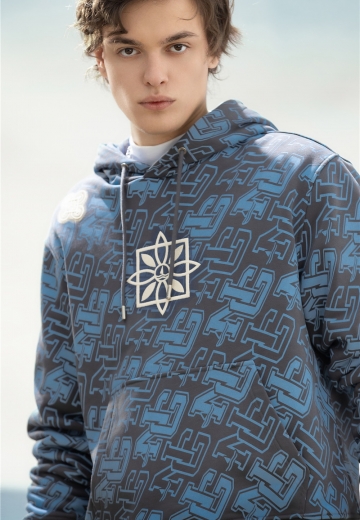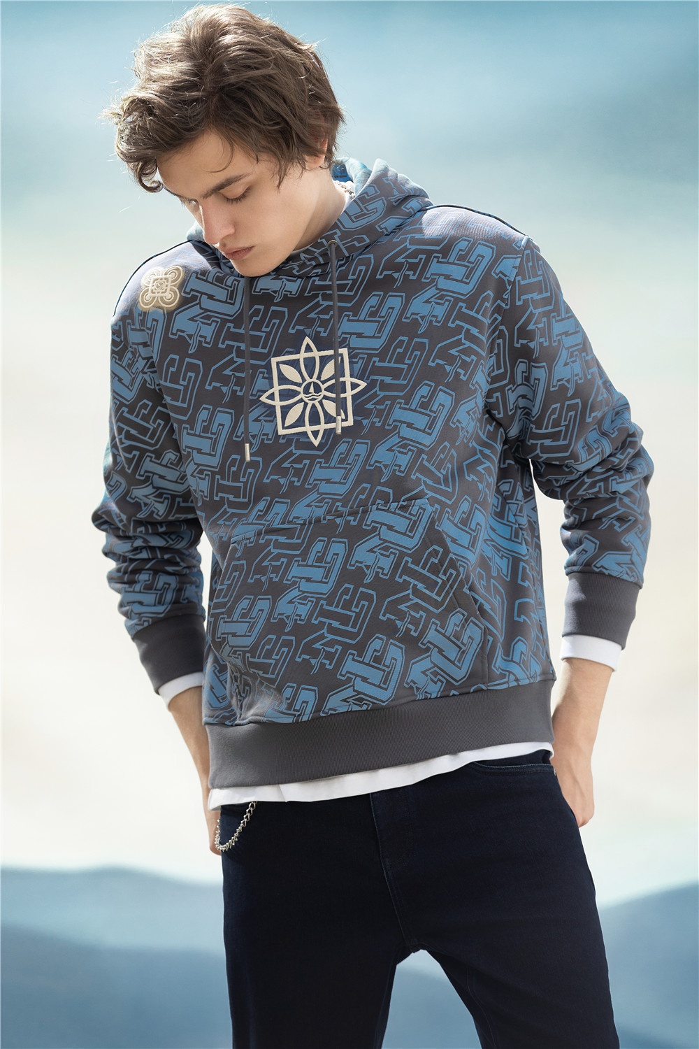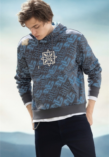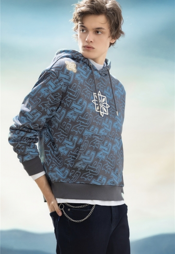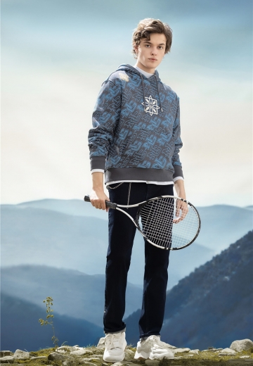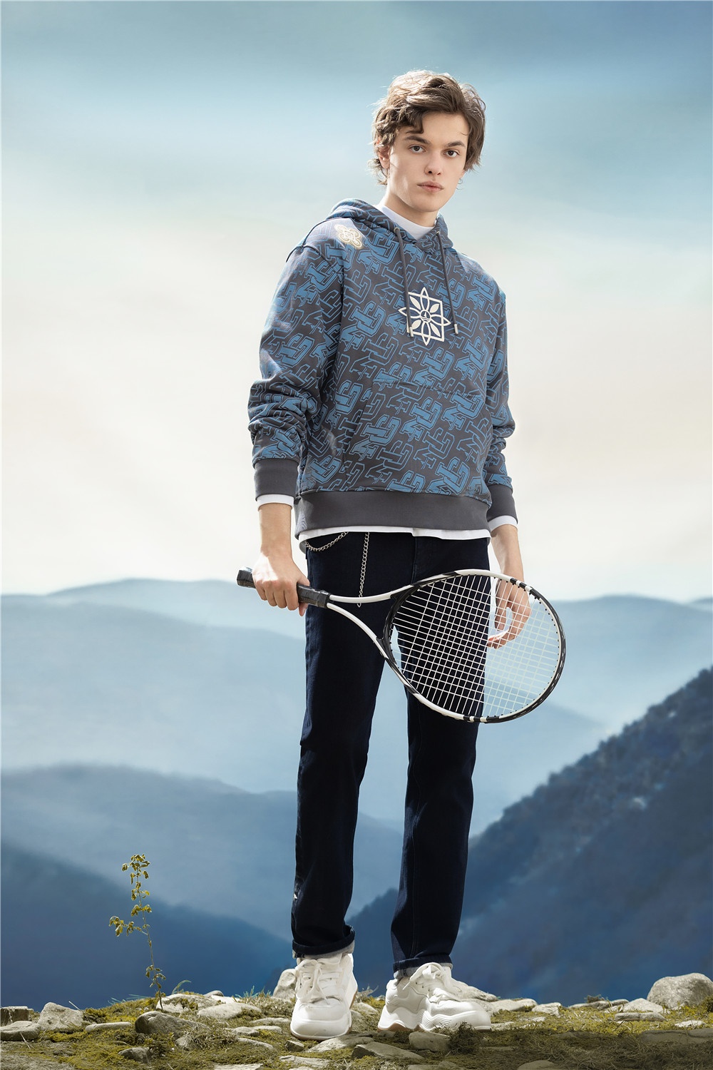 中性風(fēng)灰色打底,添加標(biāo)志性藍色設(shè)計logo印花,夸張的風(fēng)格放大個性感,潮趣十足,內(nèi)搭白色半高領(lǐng)T恤,簡約豐盈色彩,配合休閑牛仔褲,青春洋溢,帥氣出街。