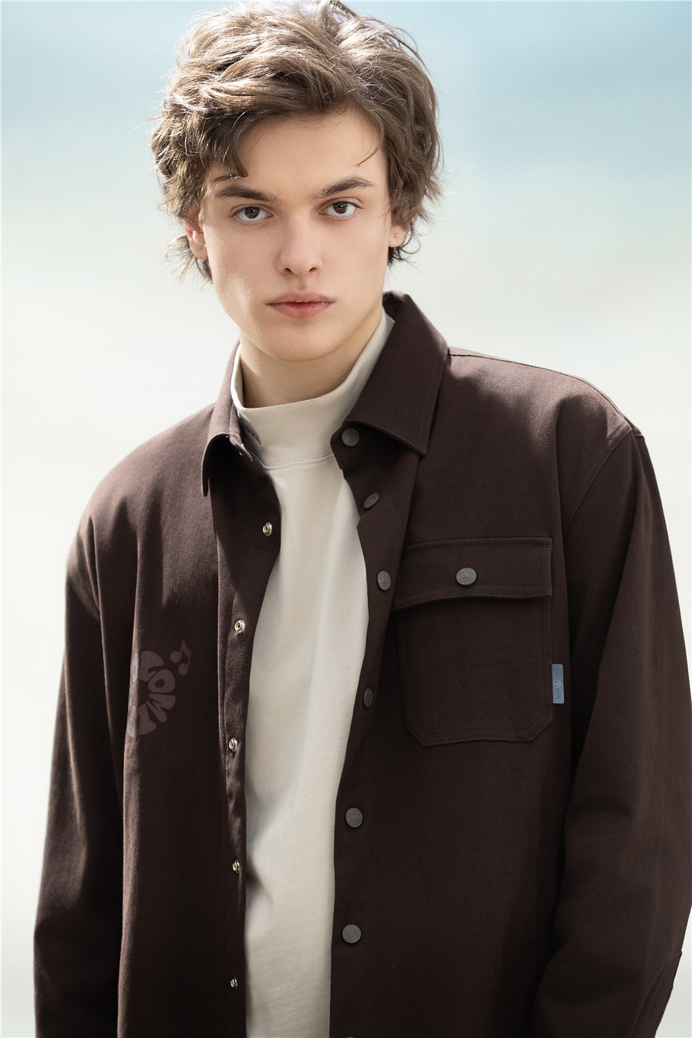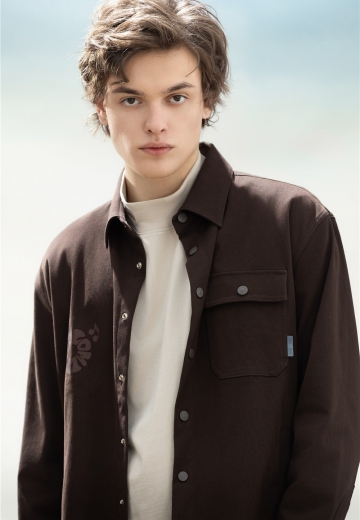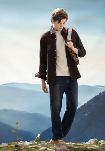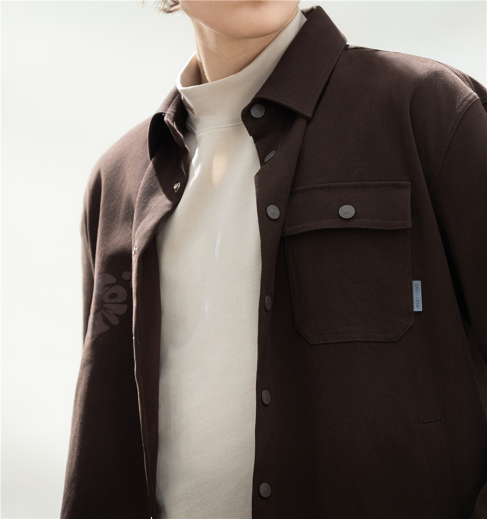 簡約深咖長襯,口袋紐扣加入工裝風(fēng)率性設(shè)計(jì),疊穿淺色半高領(lǐng)T恤,延續(xù)秋冬美拉德溫暖細(xì)膩的風(fēng)格,搭配直筒牛仔褲,通勤/休閑自如切換,一套駕馭生活不同場景。