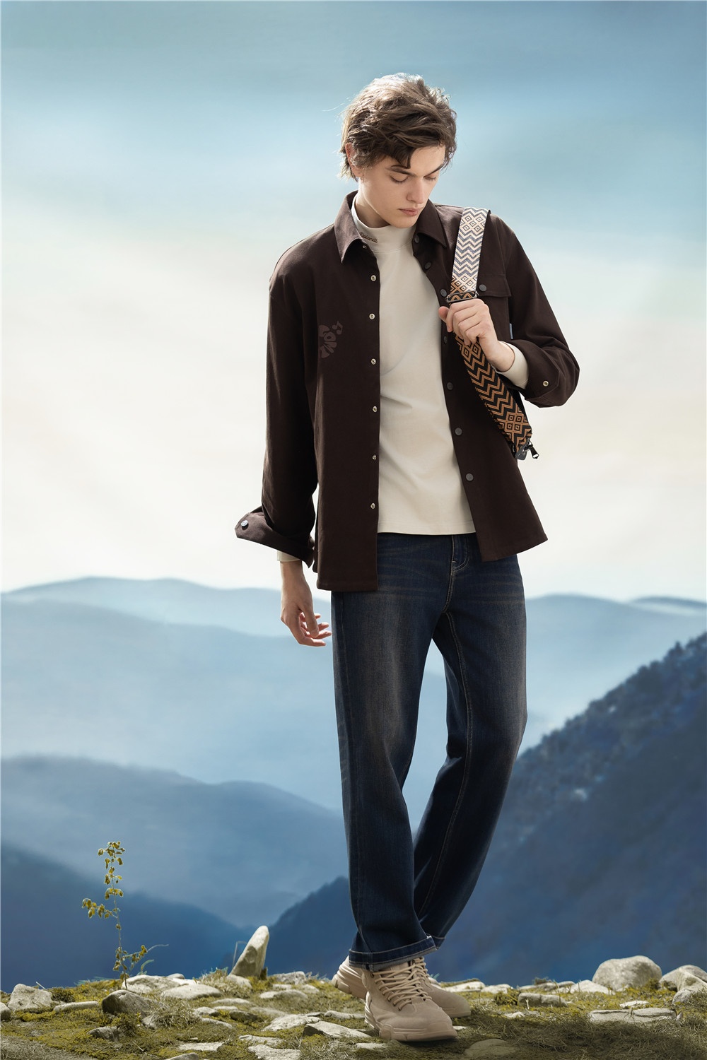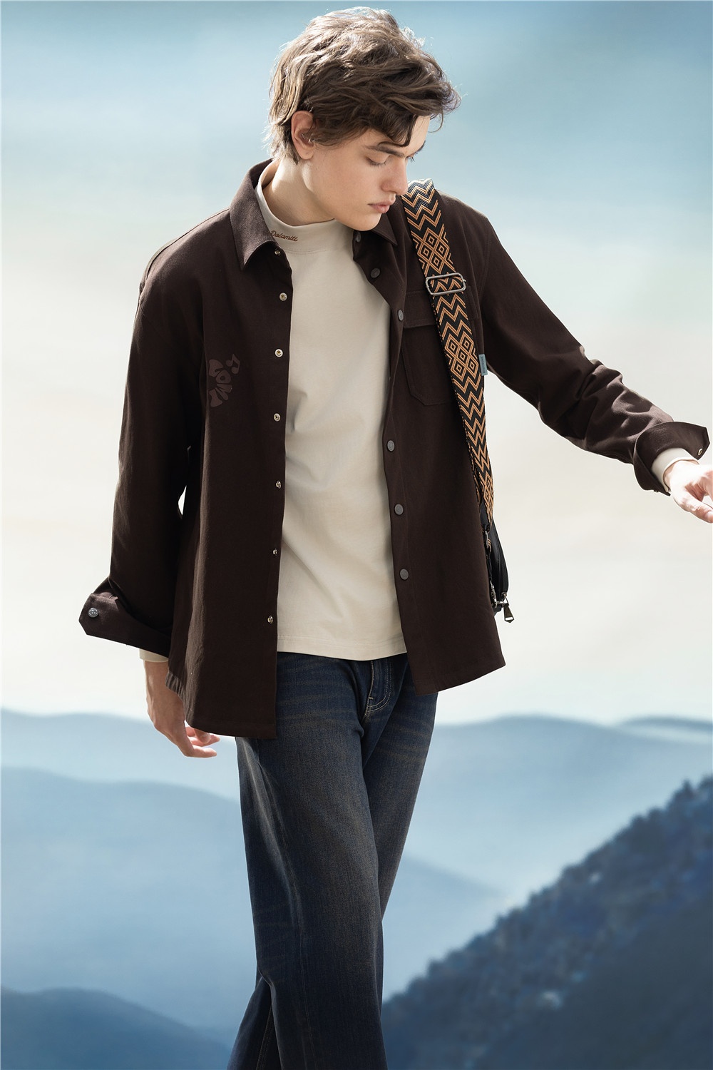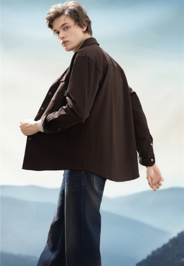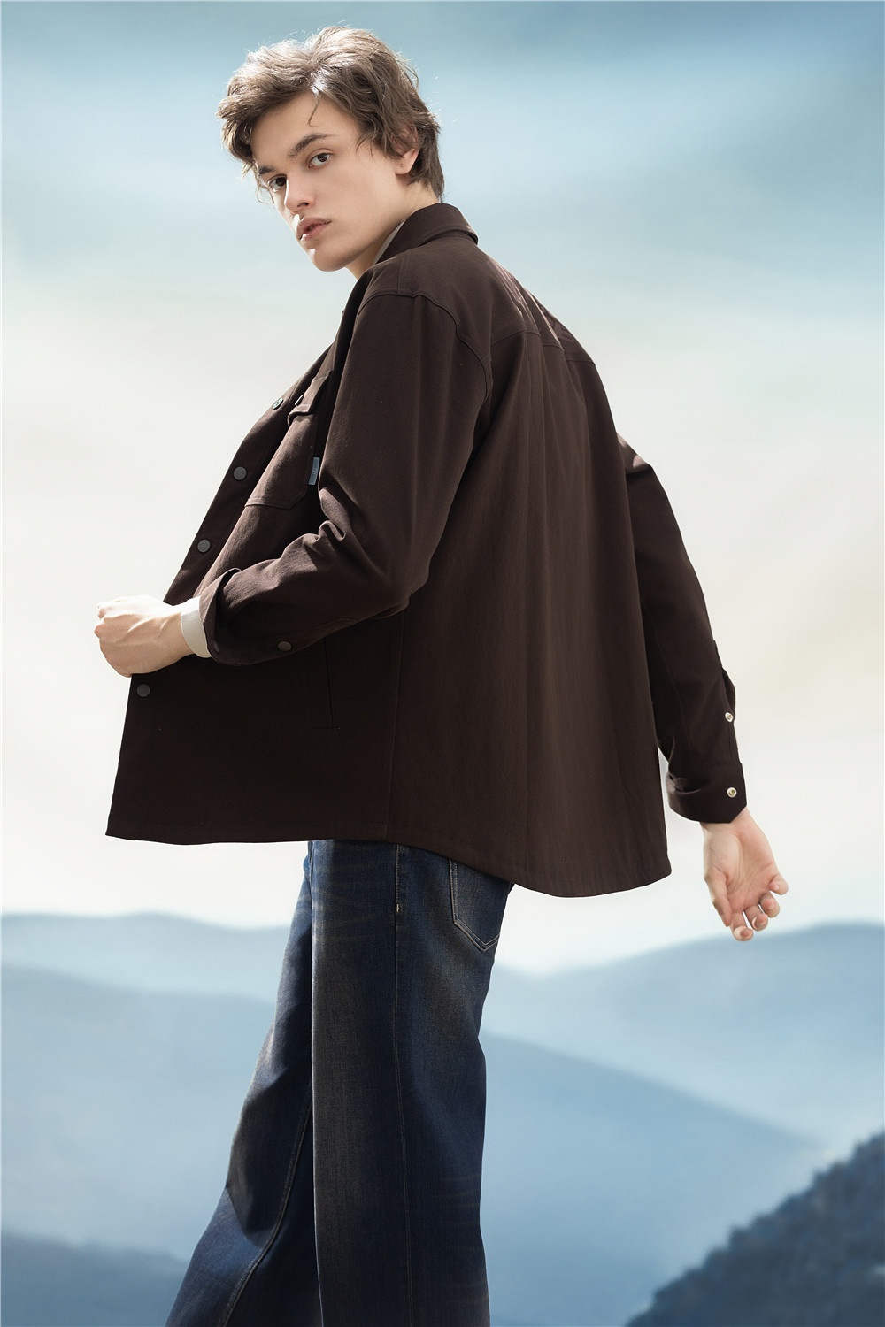 簡約深咖長襯,口袋紐扣加入工裝風(fēng)率性設(shè)計(jì),疊穿淺色半高領(lǐng)T恤,延續(xù)秋冬美拉德溫暖細(xì)膩的風(fēng)格,搭配直筒牛仔褲,通勤/休閑自如切換,一套駕馭生活不同場景。