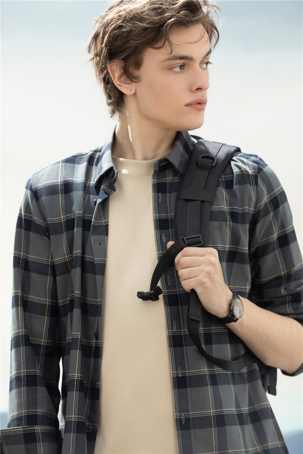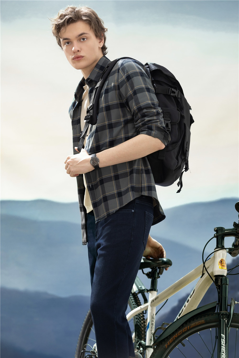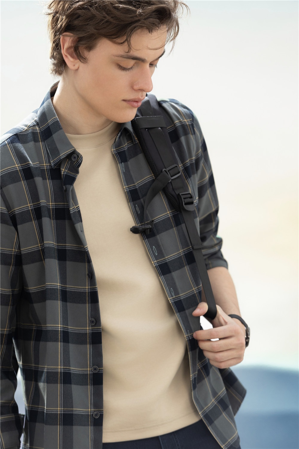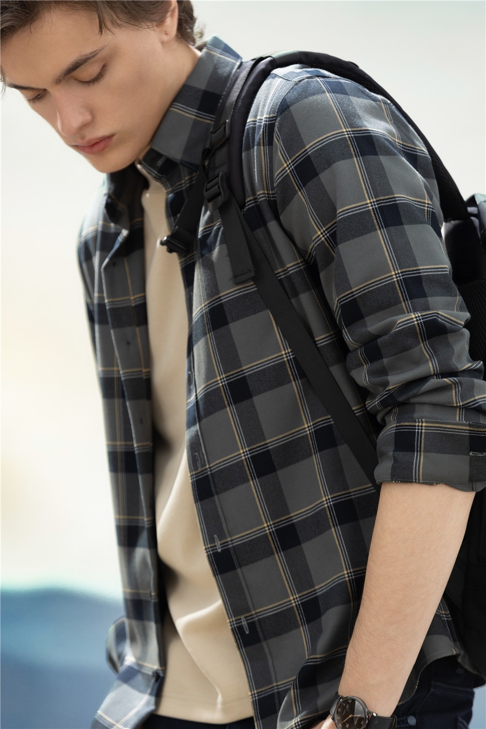 經(jīng)典款格紋長襯,疊穿米色短T恤,明暗色調(diào)對比豐富層次感,簡約造型也能時(shí)尚瀟灑,牛仔褲助力型男硬朗神采,舉手投足,盡顯自信與活力身姿。 點(diǎn)擊查看