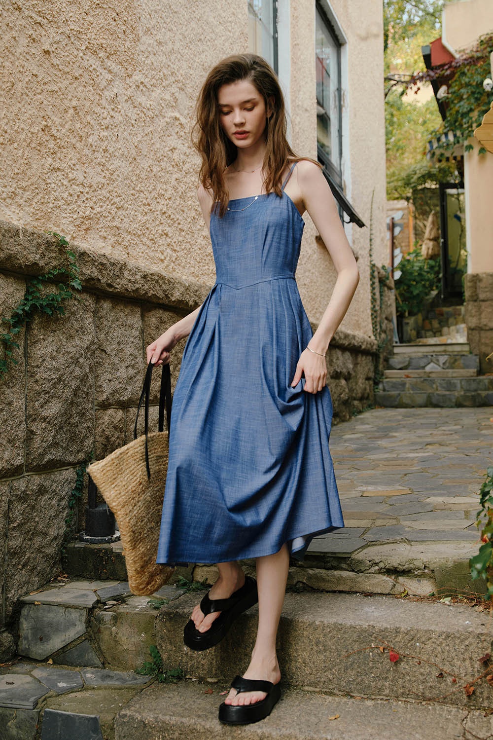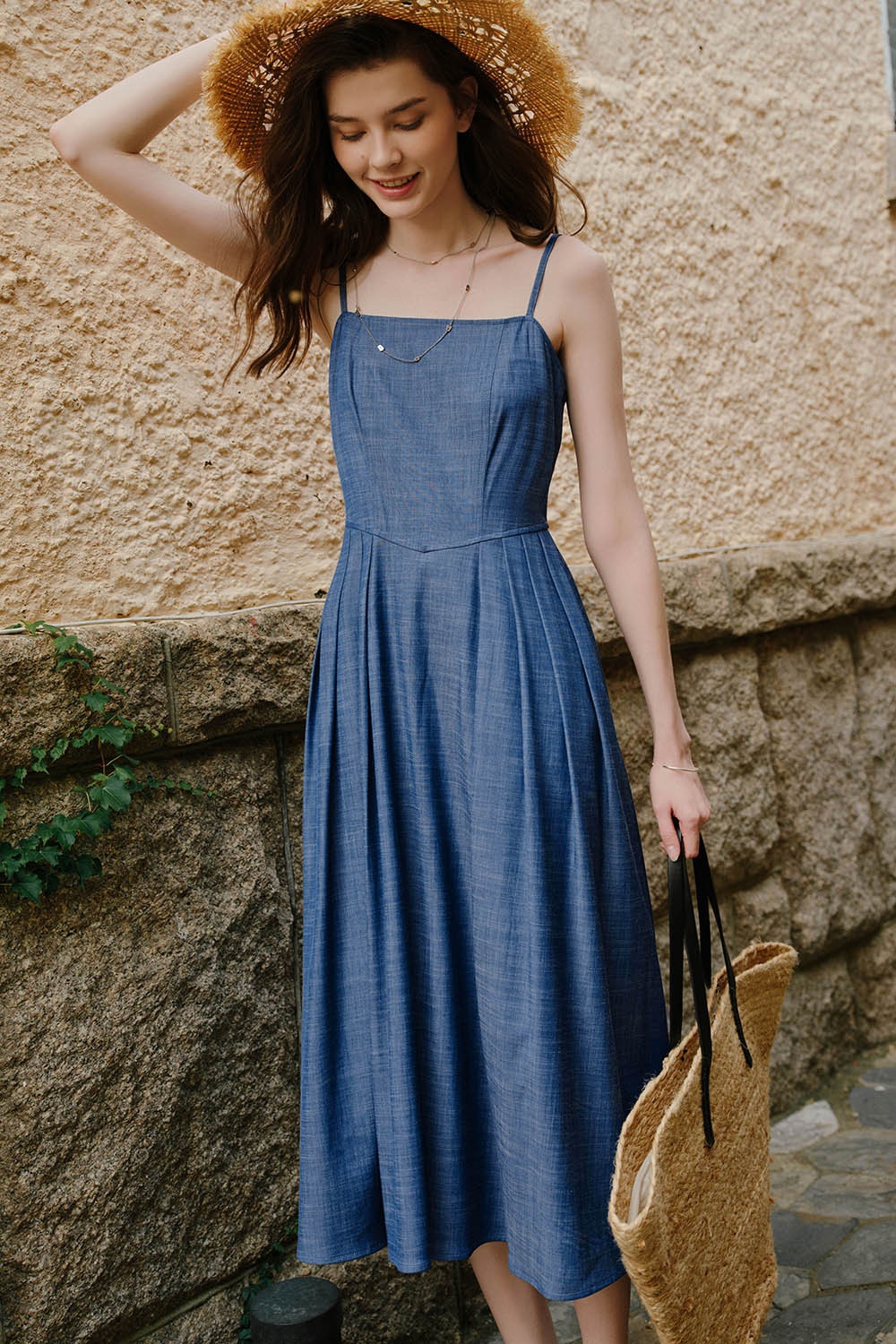 暗珠寶藍(lán)吊帶裙,柔軟細(xì)膩的質(zhì)地,輕薄透氣,低調(diào)百搭型用色,可輕松駕馭又不失個(gè)人風(fēng)格,隨意搭配草帽,漫步街頭,舉手投足,映現(xiàn)清爽盛夏。 點(diǎn)擊查看