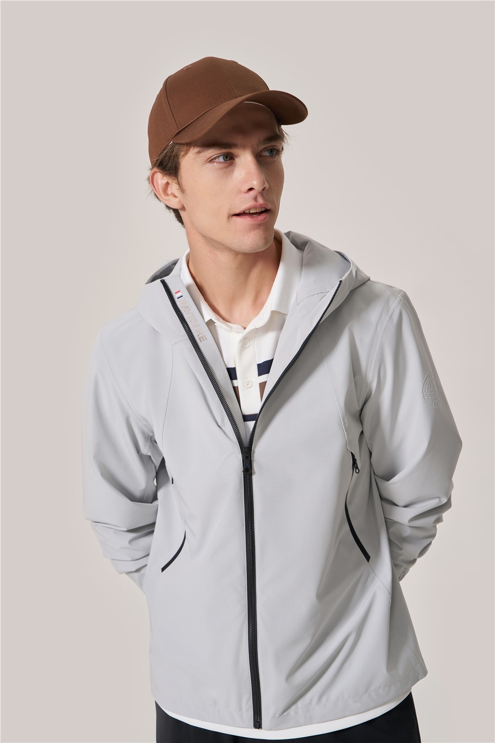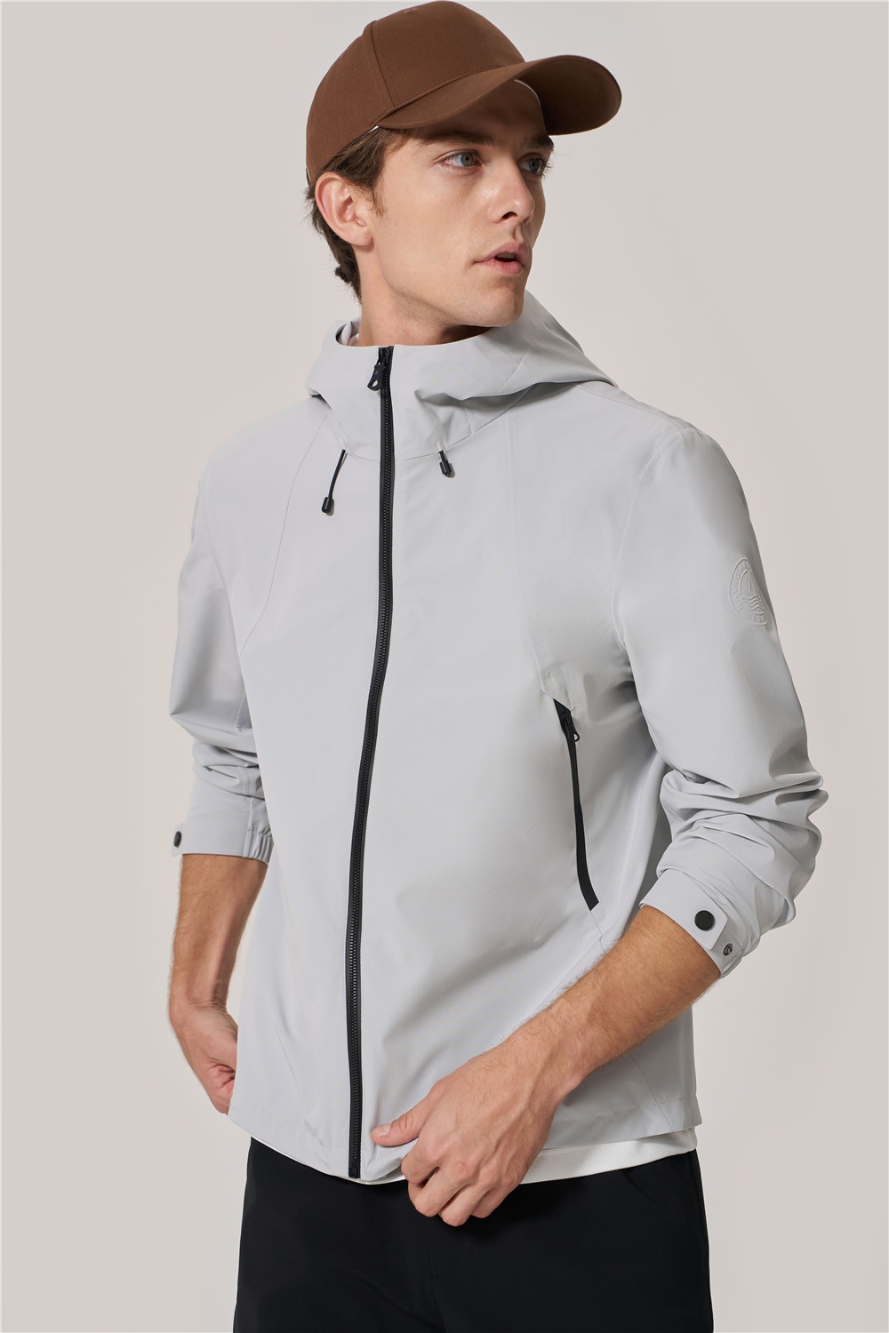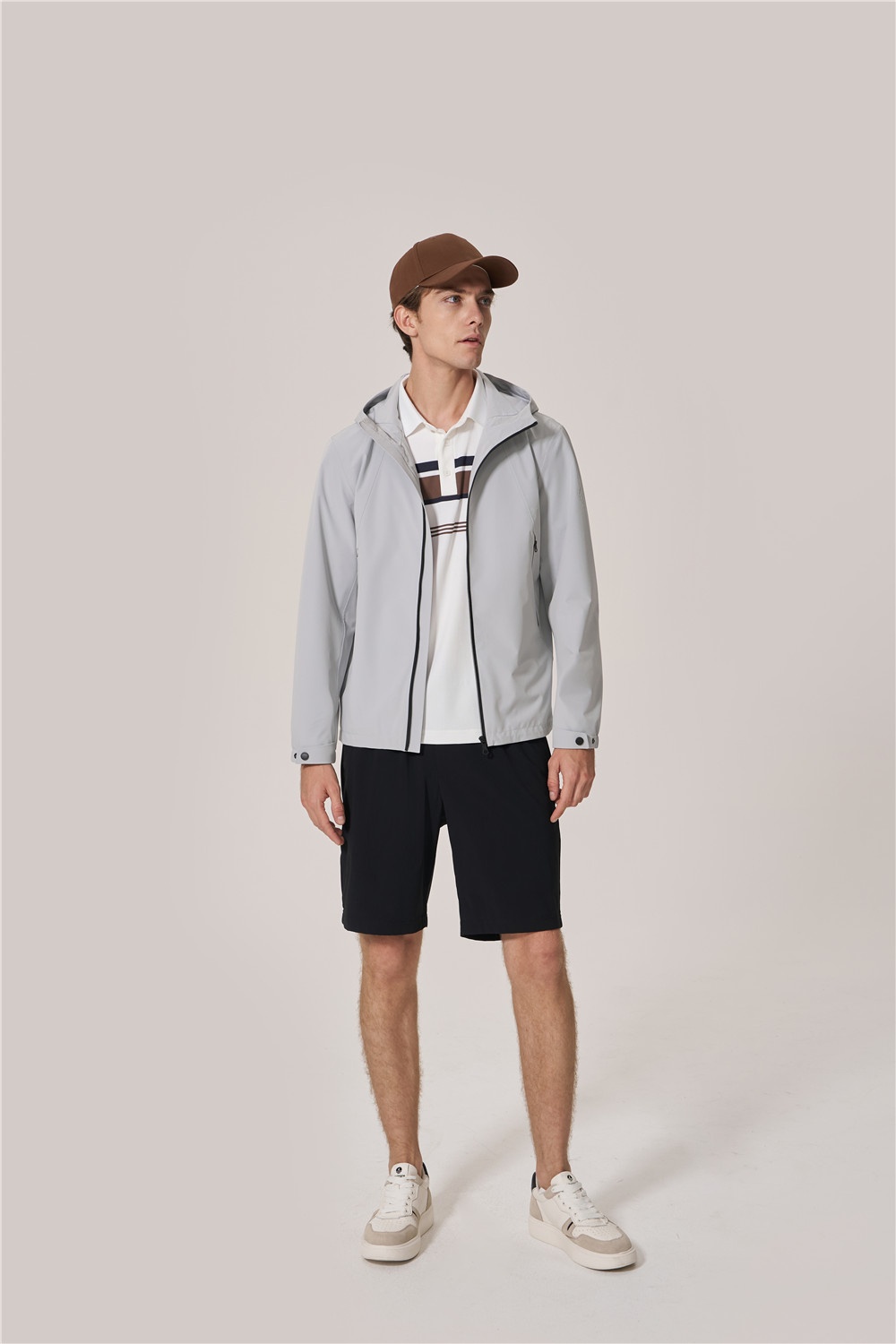 單夾克搭配短T恤,防曬不悶,讓夏日出行更舒心。簡約版型配合質(zhì)感用色,帶來舒適與優(yōu)雅并存型格,黑色中褲加分休閑氛圍,精彩完成假日亮相。