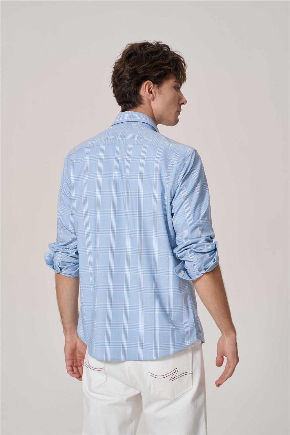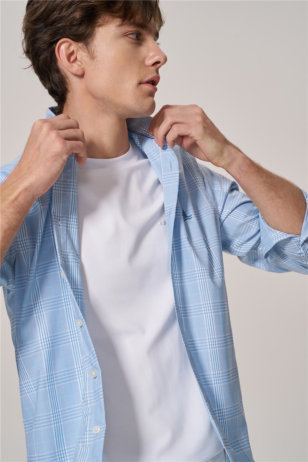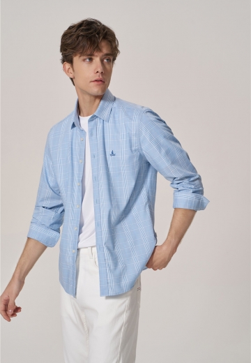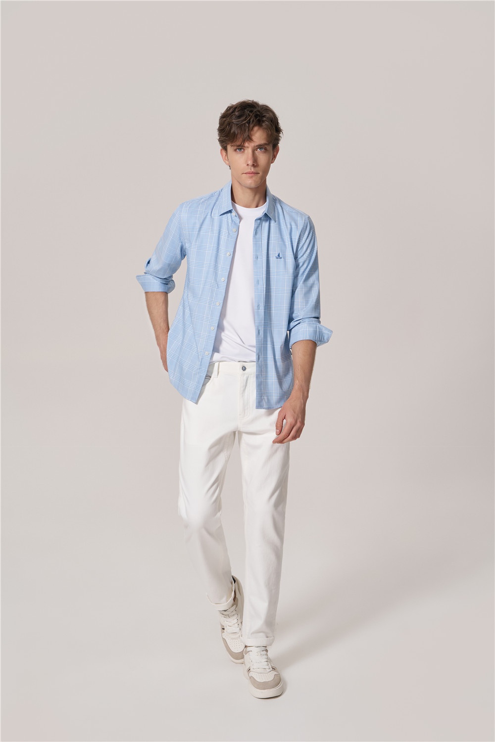 以冰水藍為底色,加入格紋設計,清爽明亮,探索辦公與休閑的平衡狀態(tài)。挺括不易皺型面料加持大方得體,輔以涼感科技冷卻滾滾熱浪,助力chill一夏。