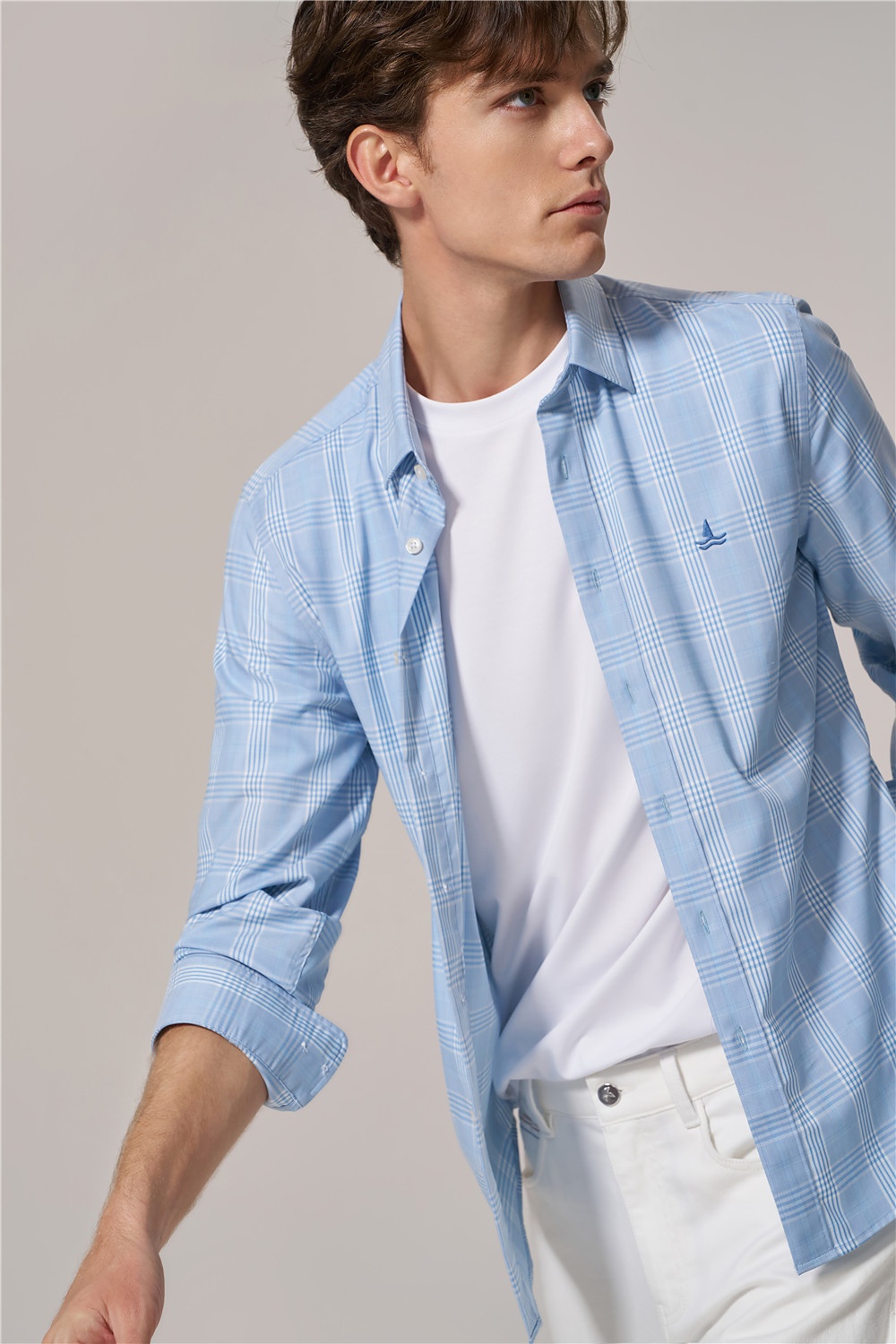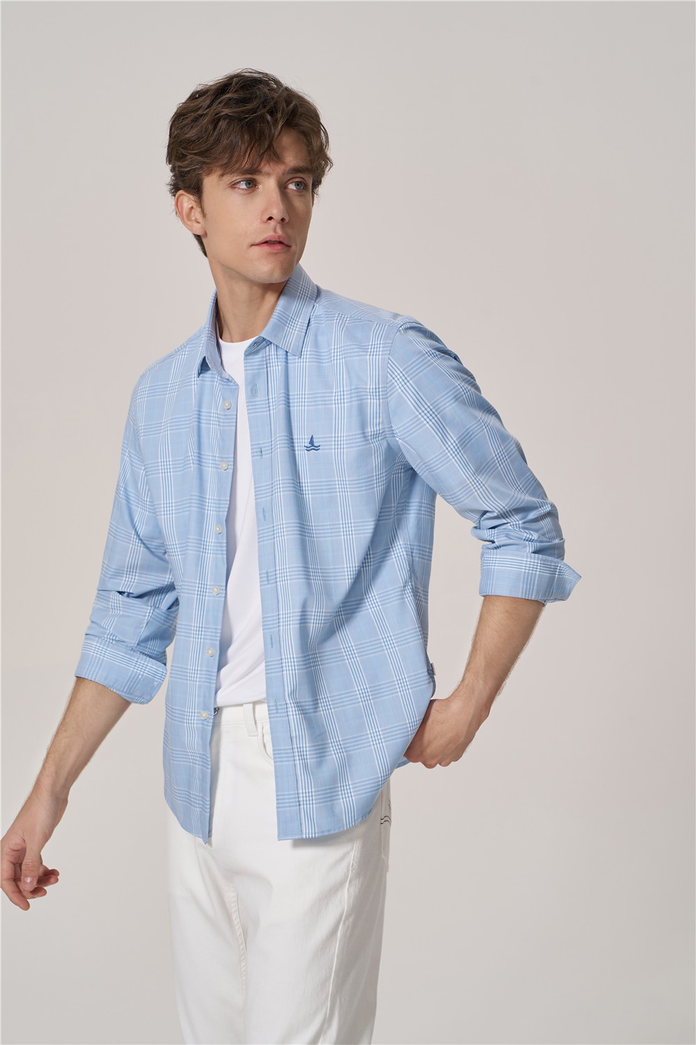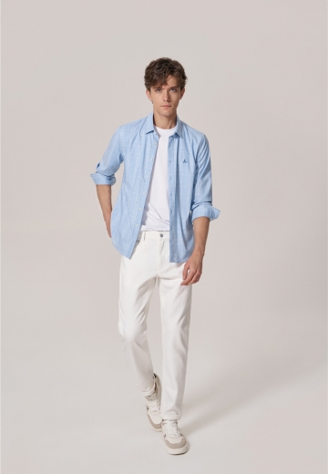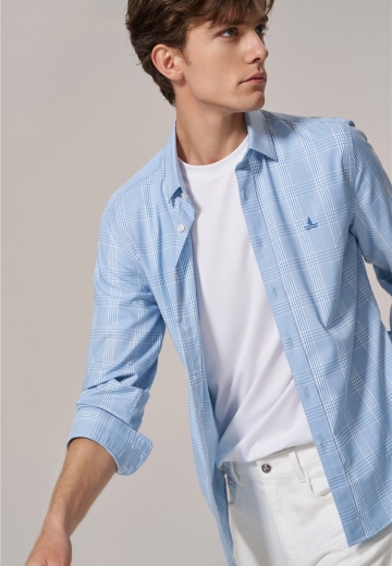 以冰水藍為底色,加入格紋設計,清爽明亮,探索辦公與休閑的平衡狀態(tài)。挺括不易皺型面料加持大方得體,輔以涼感科技冷卻滾滾熱浪,助力chill一夏。