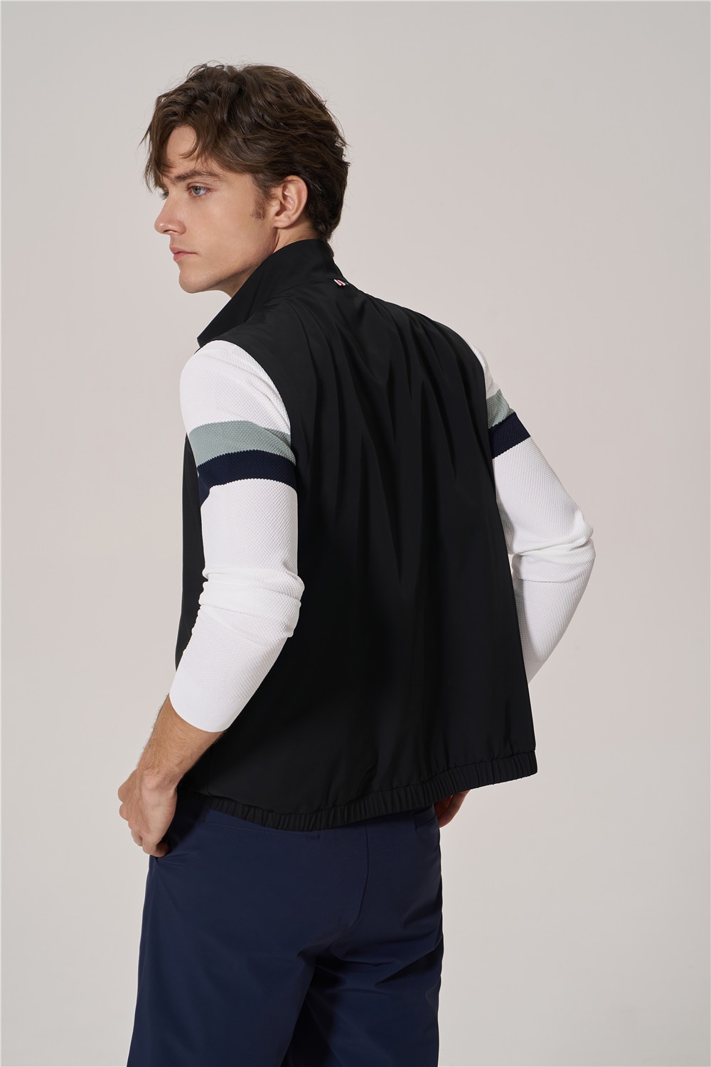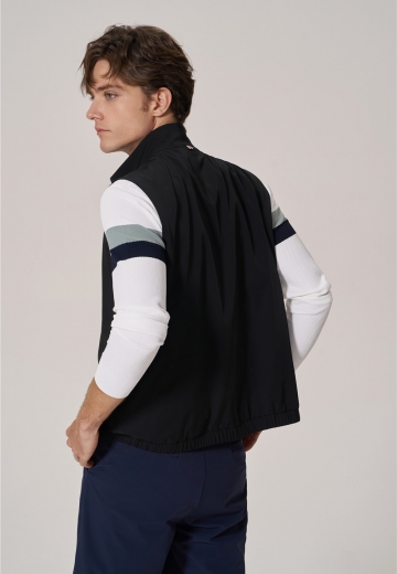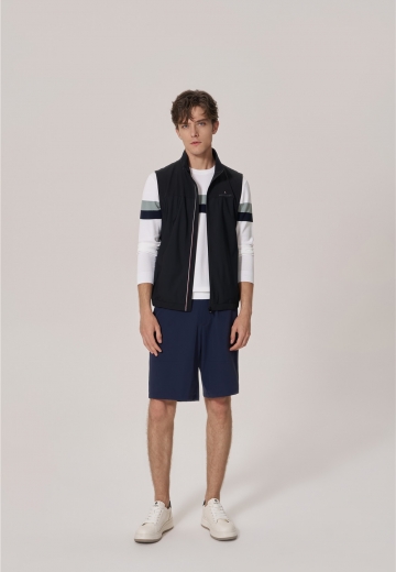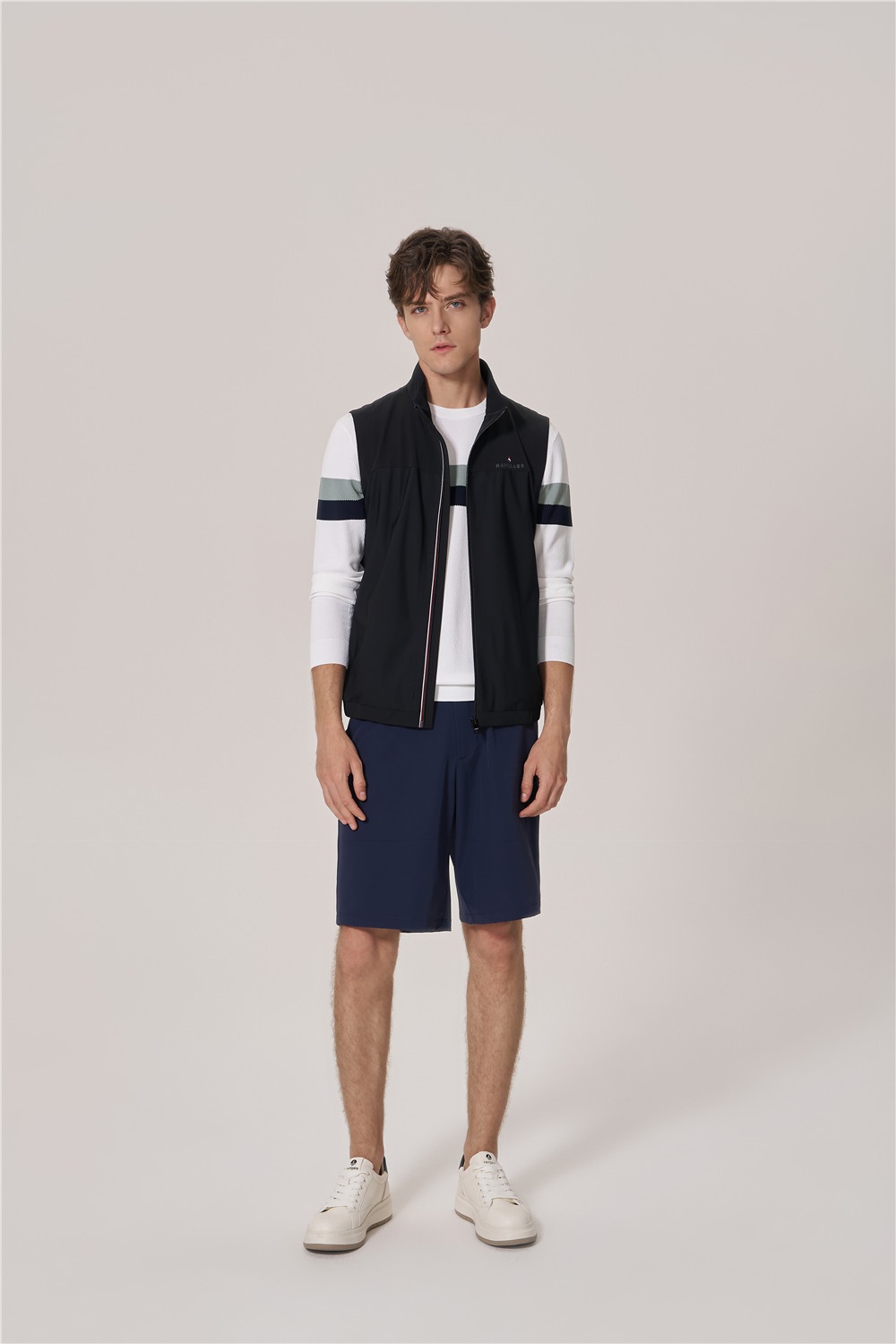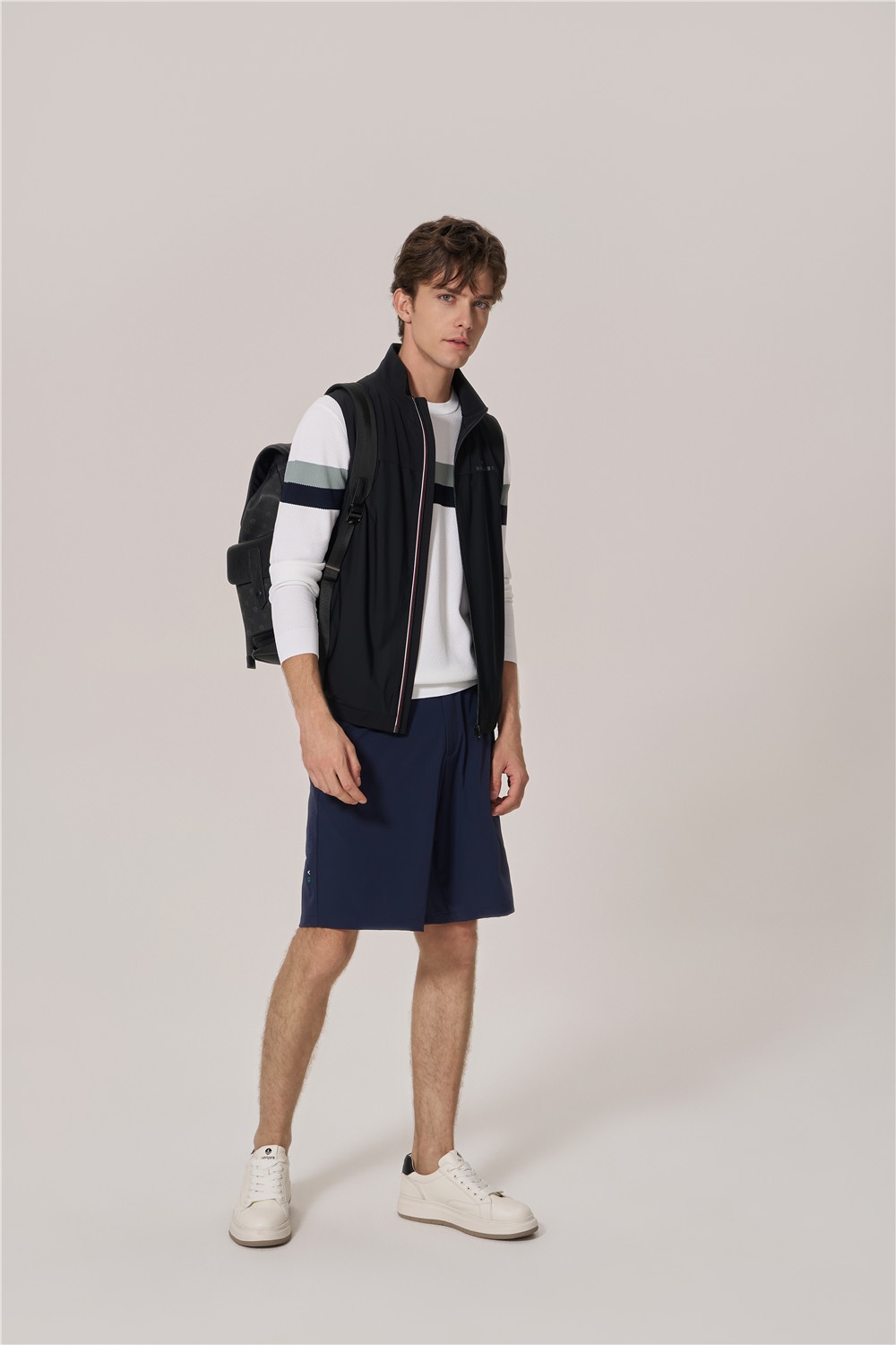 黑色系無袖外套,搭檔科技白條紋長袖圓領(lǐng)T,輕便舒適兼顧整體層次感,以簡約化色彩開拓出場景更多可能,擺脫束縛,率性表達(dá),助力春與夏時(shí)尚轉(zhuǎn)場。