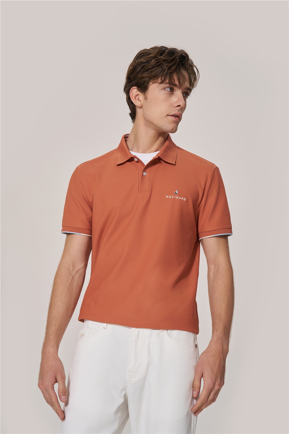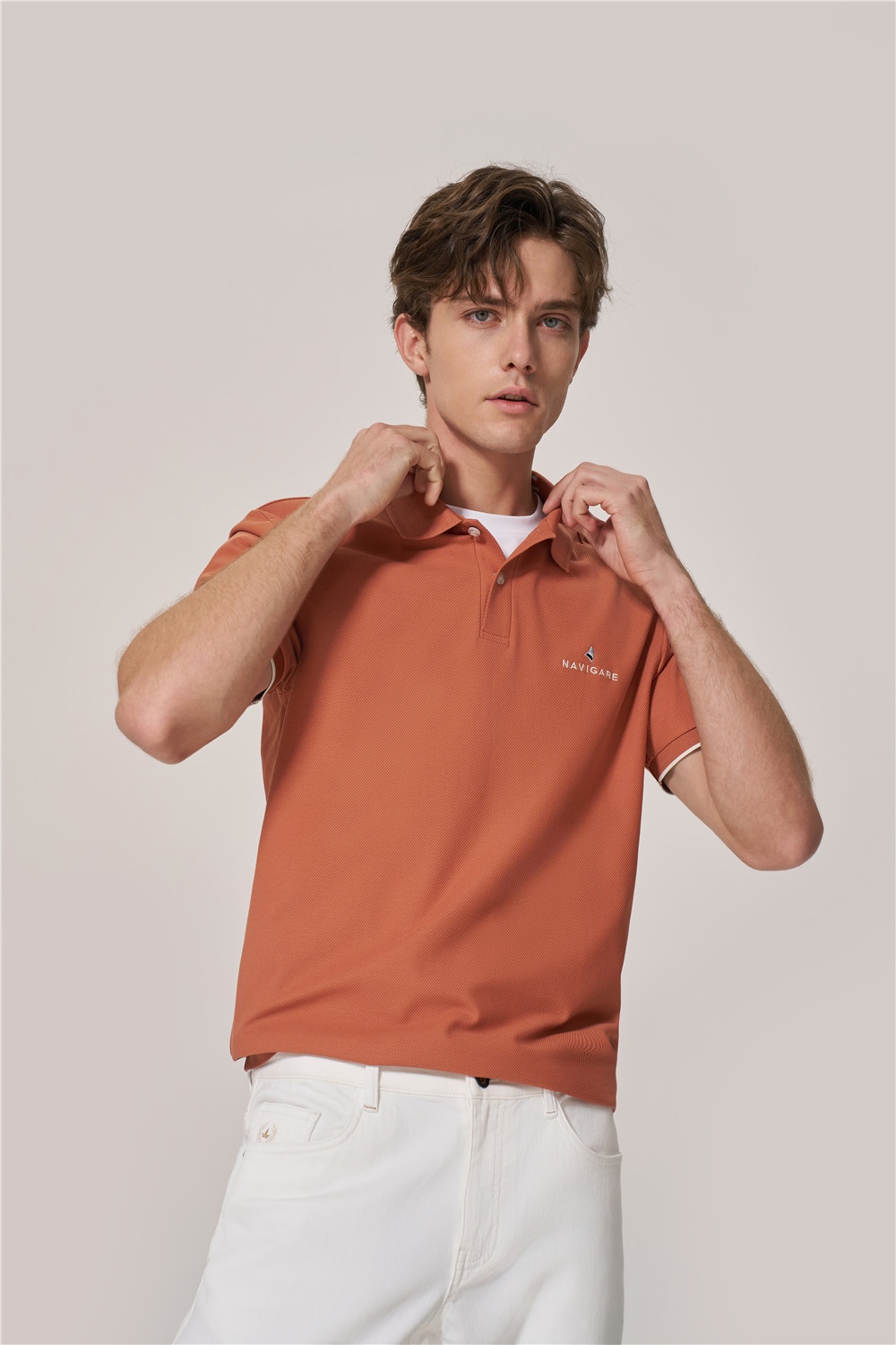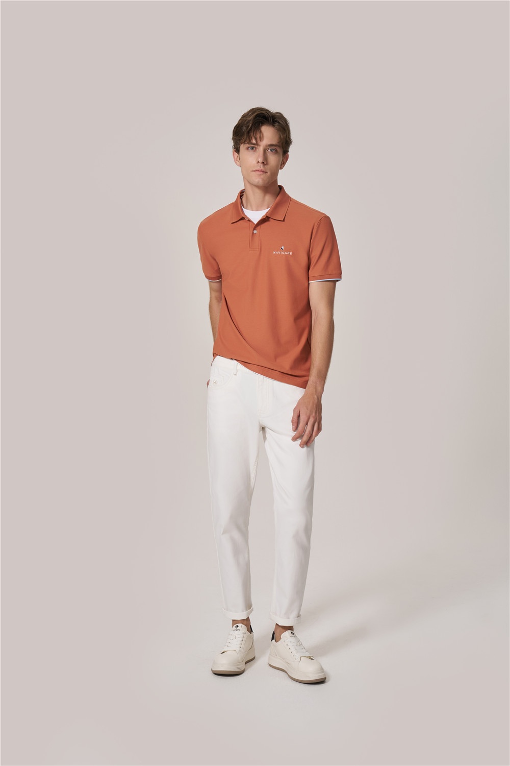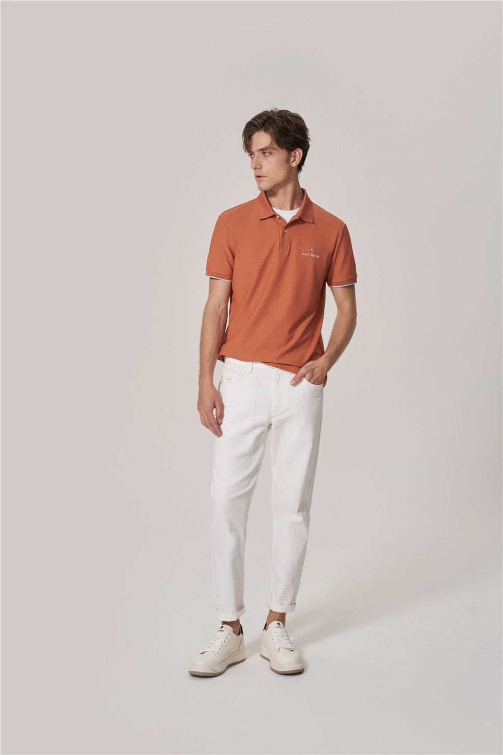 焦糖咖啡棕配色Polo,演繹清新與活力姿態(tài),搭配白色休閑褲,輕盈舒適,張弛有度,在明媚夏日盡情釋放多巴胺,定格每一天都精彩。