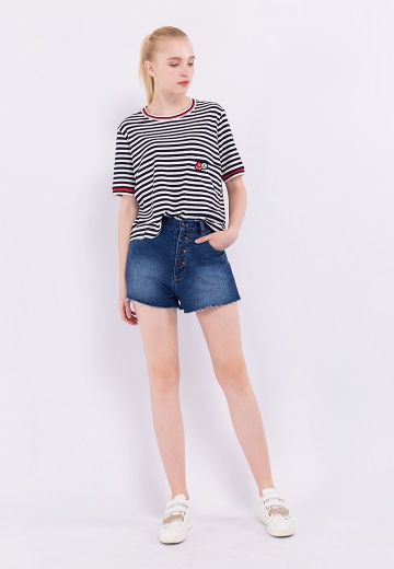 222550903-660 想把時尚與經(jīng)典穿上身?百搭條紋首當(dāng)其選。黑白系條紋搭配帶你回歸意大利島嶼,享受自然的本真。搭配牛仔短裙,融合為最適合春夏型裝,注入靚麗配色點綴,帶你回歸純情年代代的復(fù)古休閑風(fēng)潮。 點擊查看