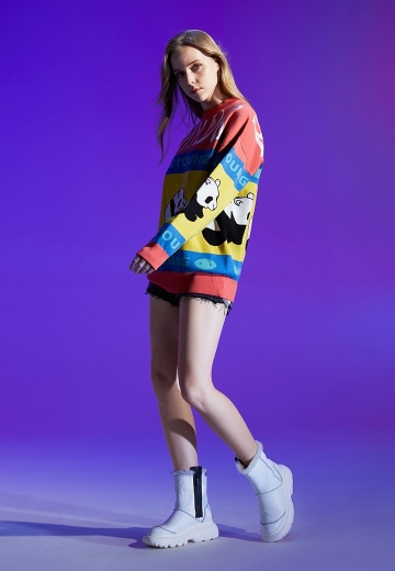 123580908-301 /621 潮趣風(fēng)尚亮色衛(wèi)衣,靈感來自黎明時游走于羅馬街頭的銀幕佳人,利用針織性能使用不同顏色的紗線組合成幾何幾何式拼貼圖案;一改往日沉悶,早就鬼馬精靈的形象,缺不失從容沉穩(wěn),讓整體更顯休閑。 點擊查看