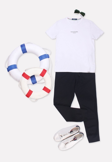 圓領T恤:1225500031-020 休閑長褲:1212770071-686 基礎圓領短T,穿著舒適,以純色休閑為基礎,用品牌logo字母放置前胸,讓整身視覺更有活力,百搭法則,最是青春活力;制造出個性且簡約時尚的格調(diào),使穿著休閑有型。 點擊查看